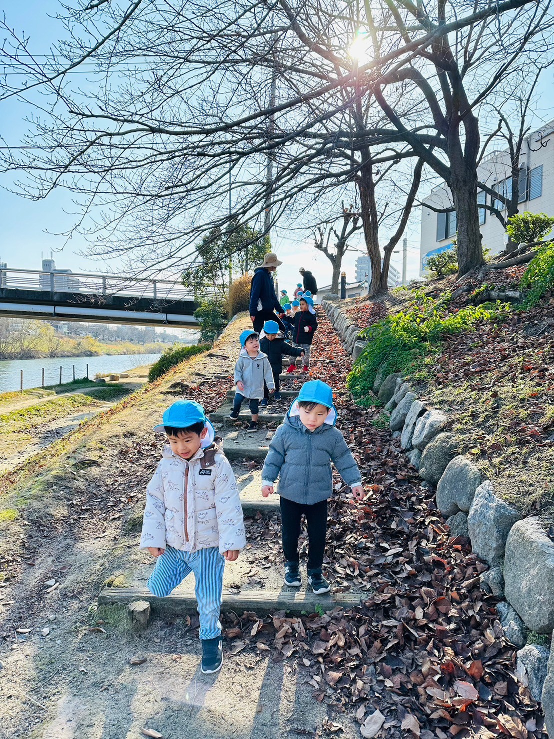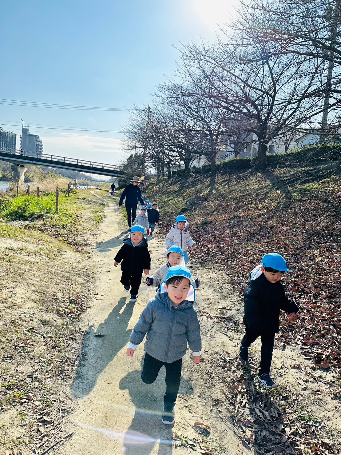 土手でもみんなで元気に遊びました🤭