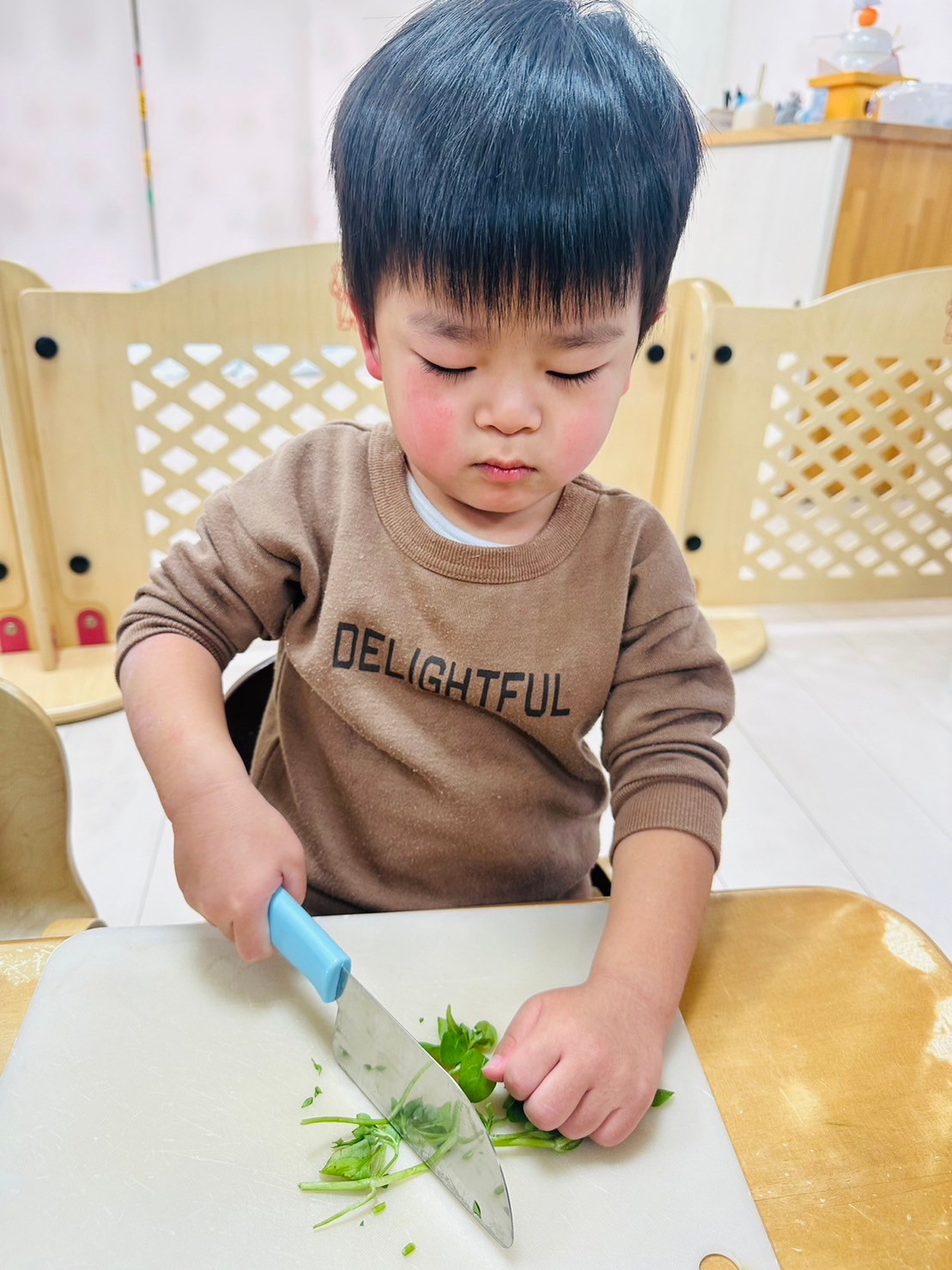 2歳児さんはトントン🎶包丁で刻む