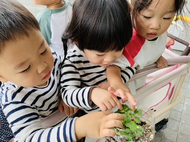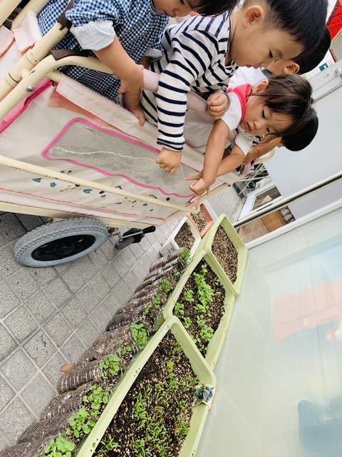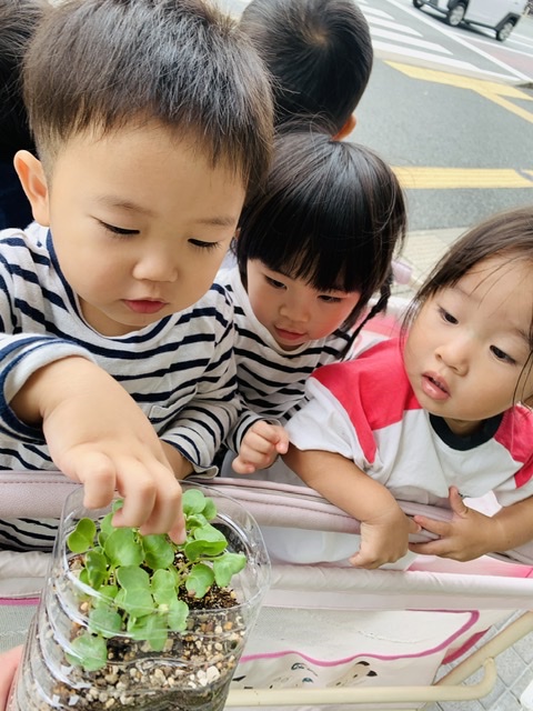 先日よりも芽が伸びていて、子ども達も大喜びでした⸜(*ˊᗜˋ*)⸝