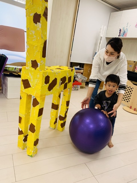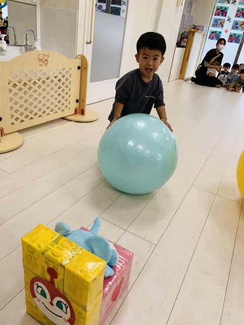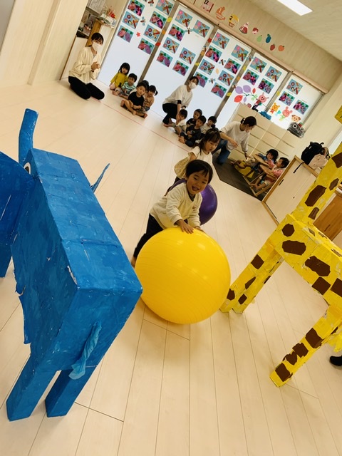 大玉転がしでは、皆が作った動物さんをくるっと回って帰ってきます⭐️