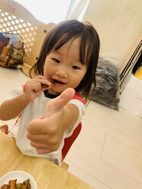そして3時のおやつは、10/8の「骨と関節の日」にちなみ、給食の先生がカルシウムたっぷりの手作りかりんとうを作ってくれました🤗