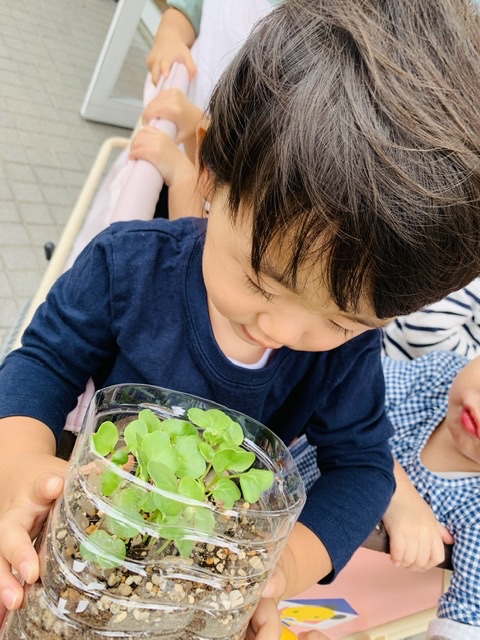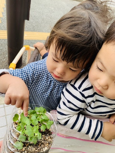 外気浴では、大根と、ほうれん草の芽を観察しました✨