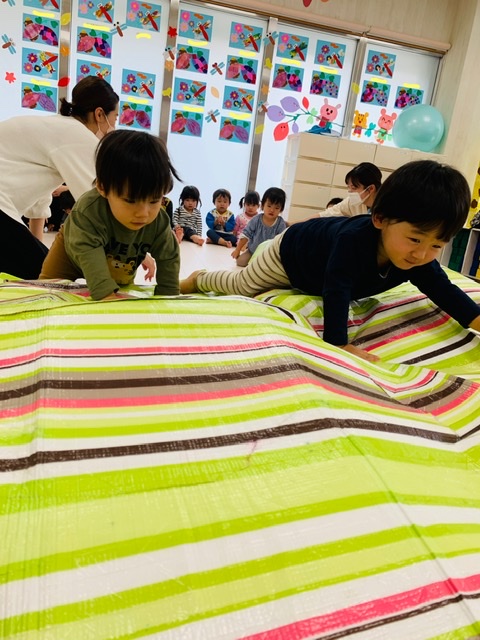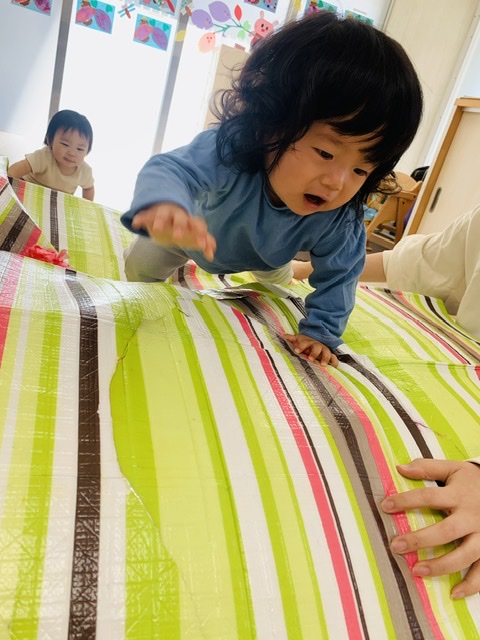 0歳児さんもハイハイでお山を超えるのことを楽しんでいました😆