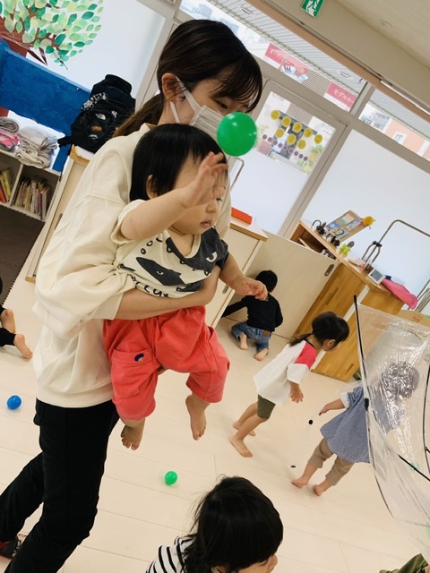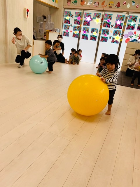 0歳児さんも大きなボールに興味しんしんでしたよ😍