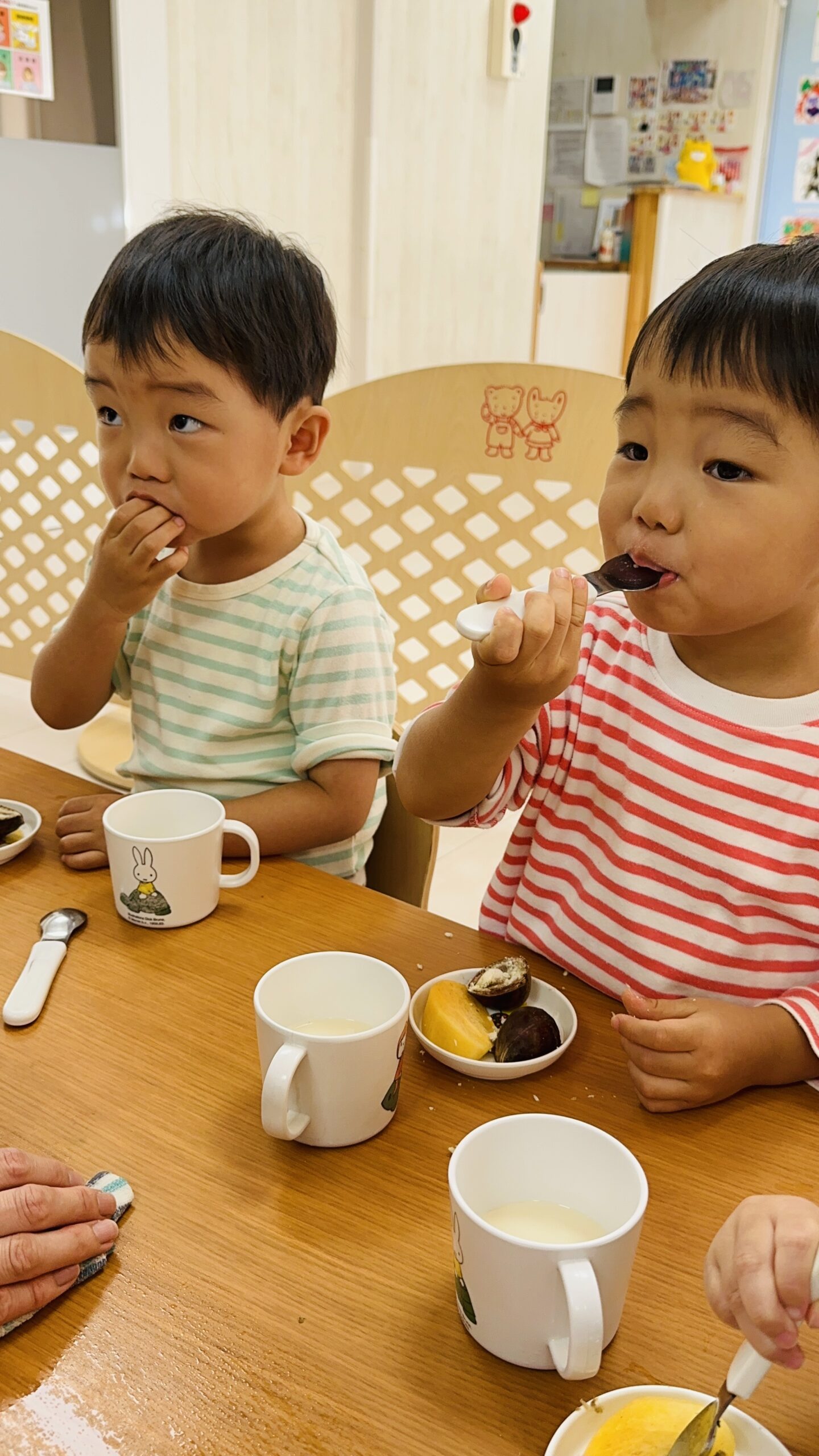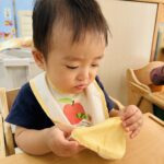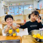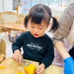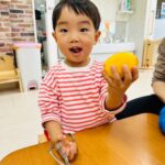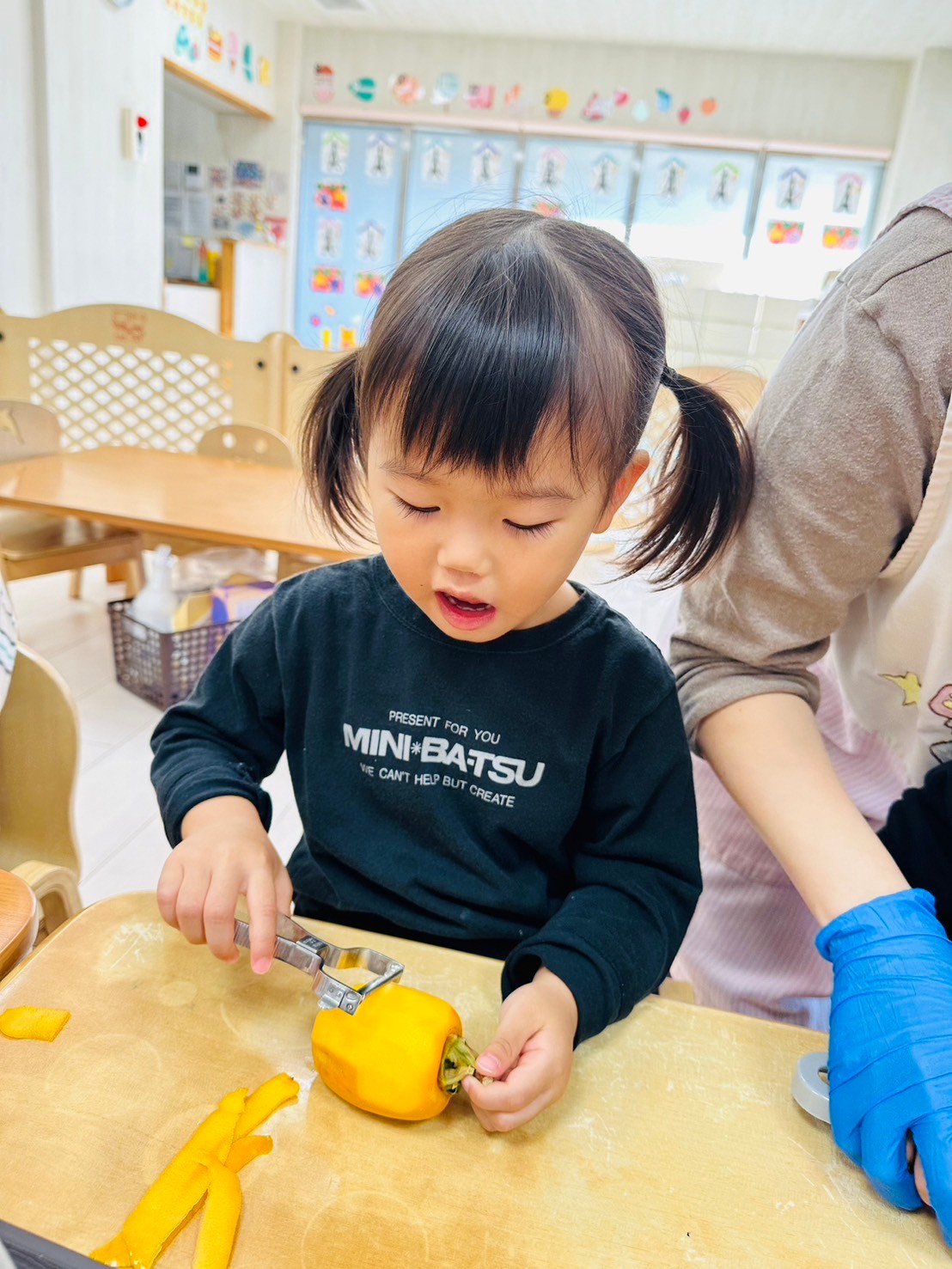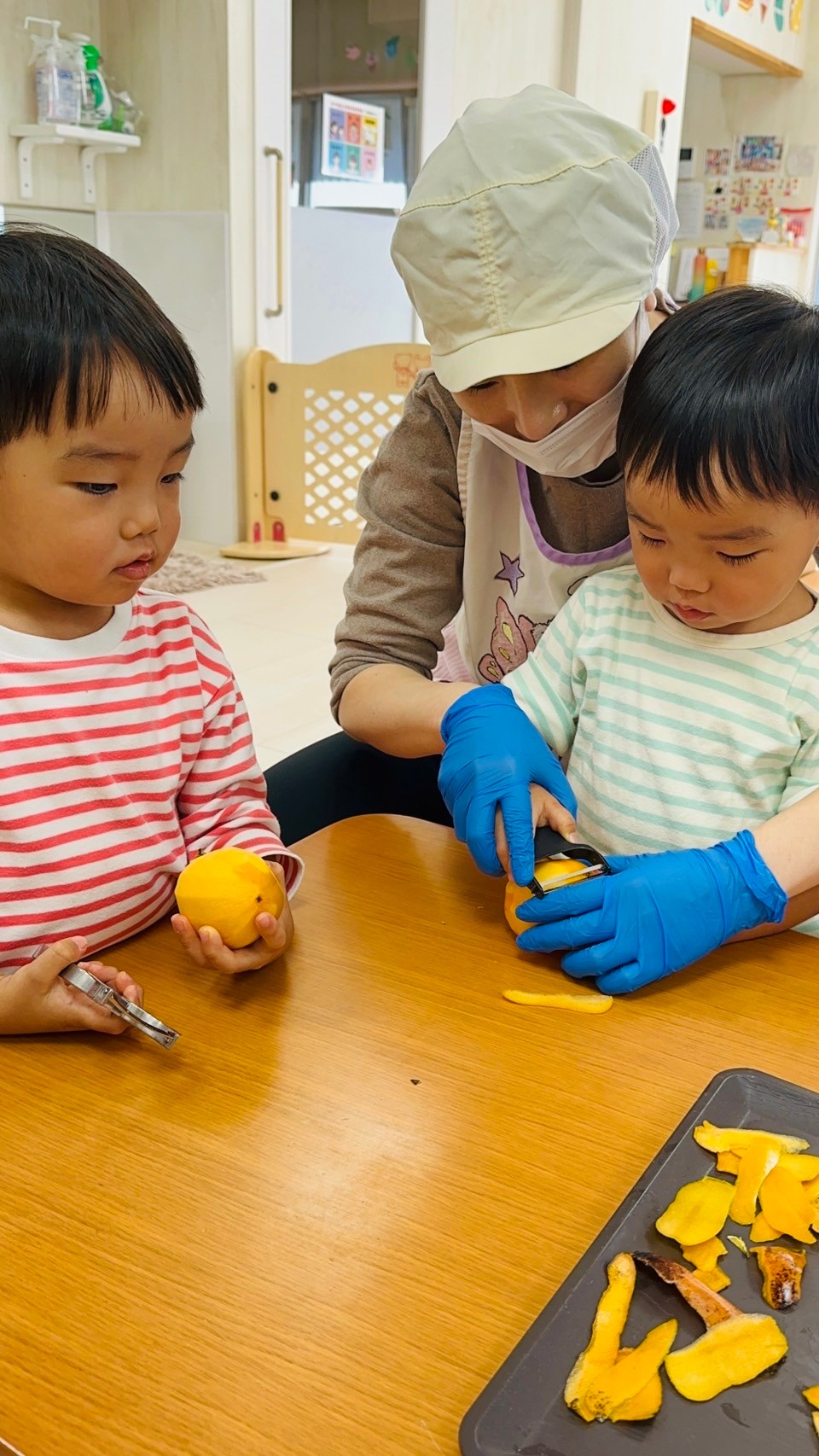 2歳児さんはピーラーを使って皮を剥きました✨