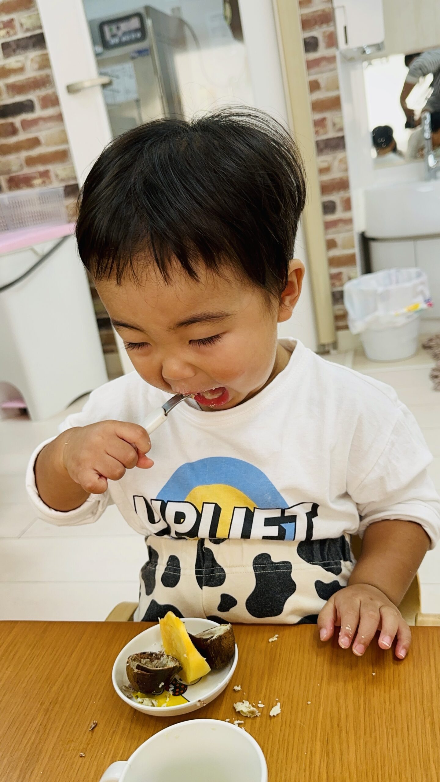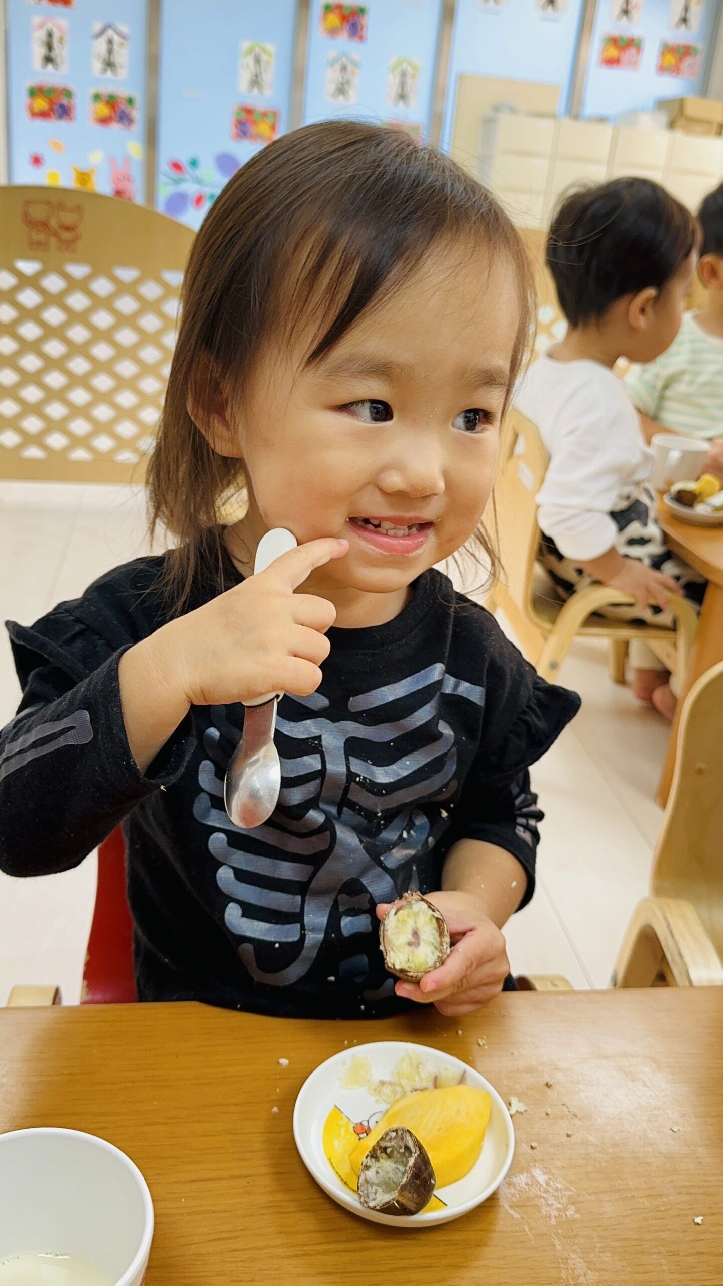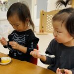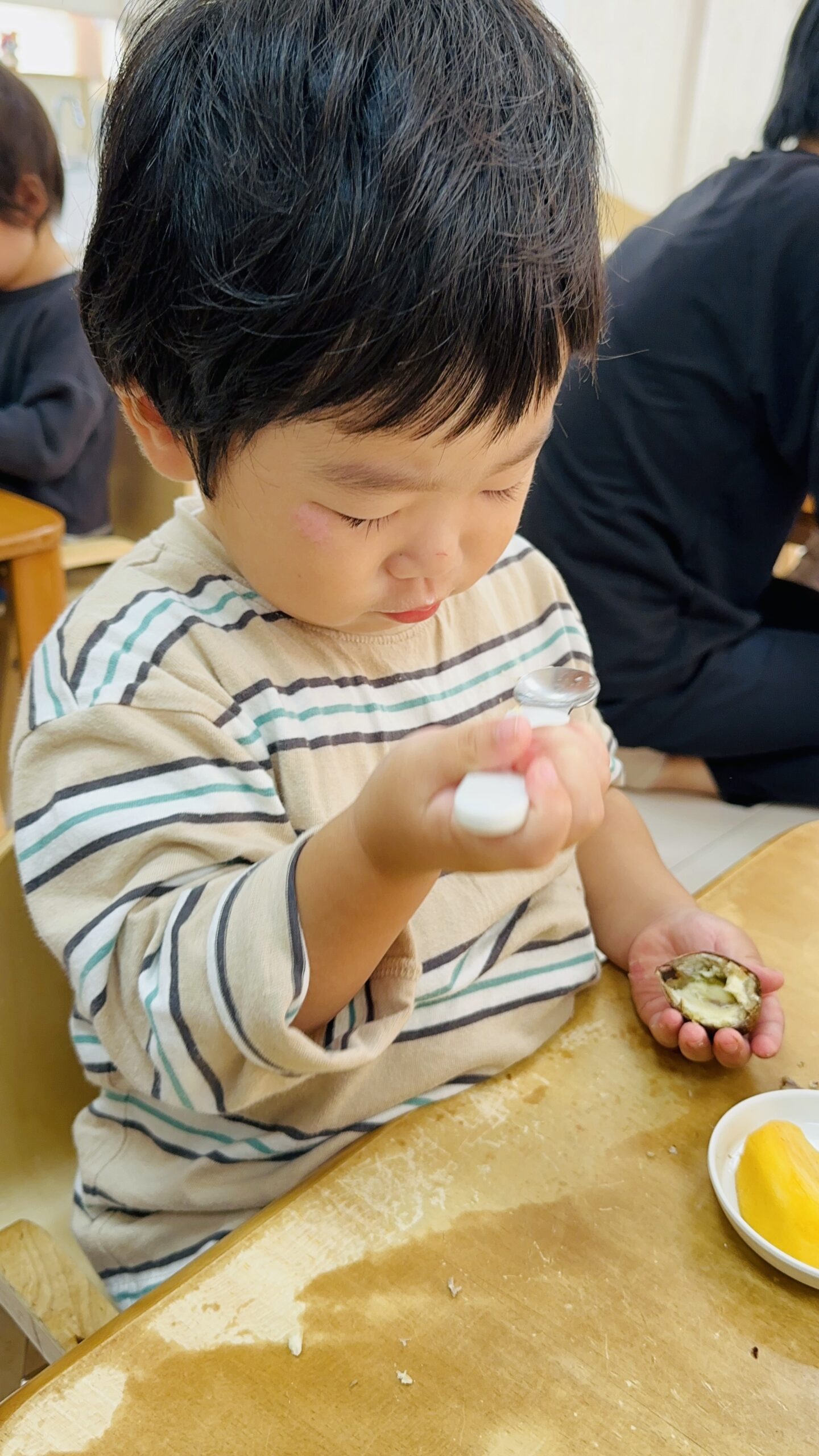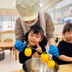 2歳児さんはピーラーを使って皮を剥きました✨