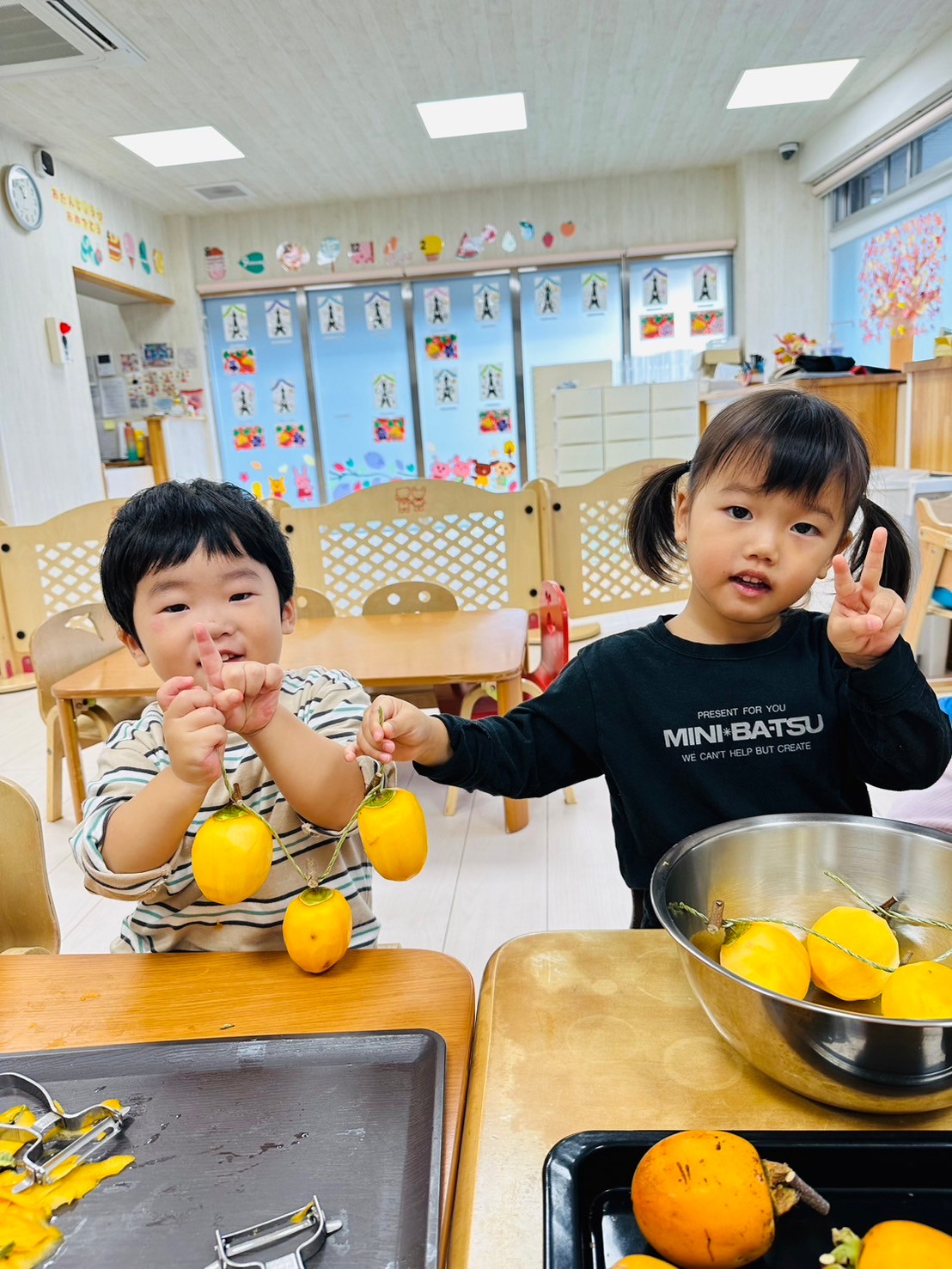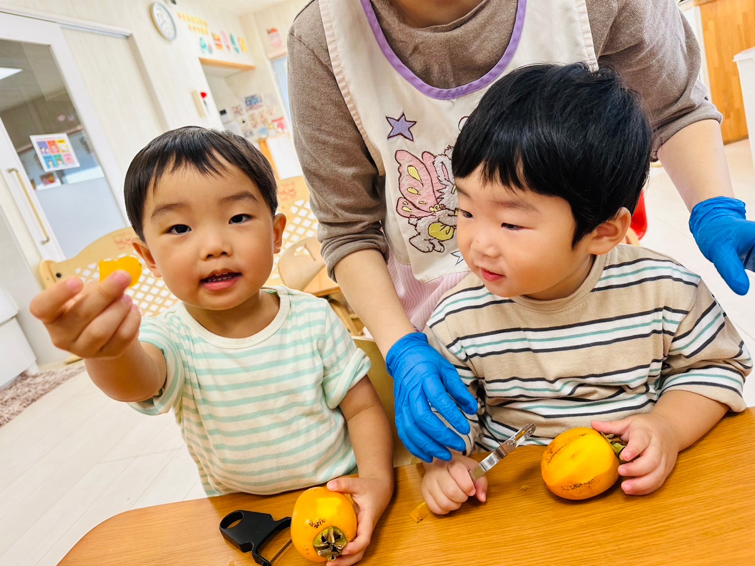それから柿と栗の食育もしたよ🌰