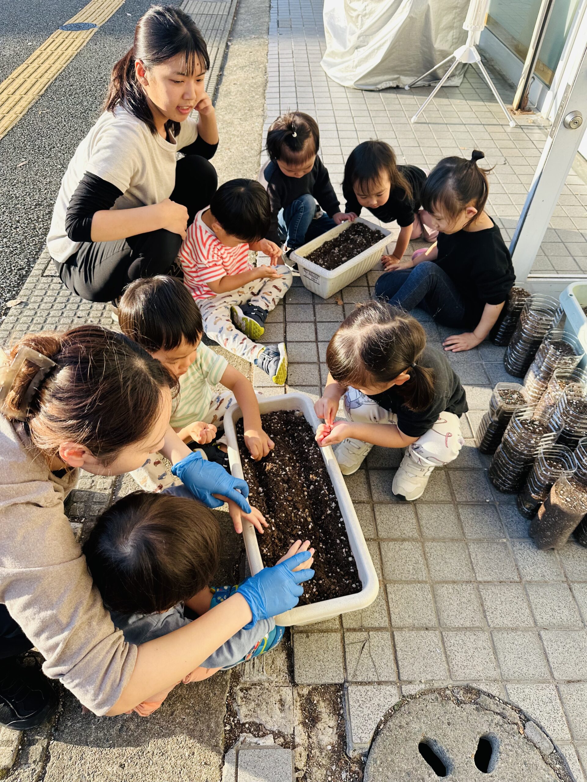 写真は少ないですが、冬野菜の苗植えもしましたよ🥬これから水やり頑張ろうね🌈
