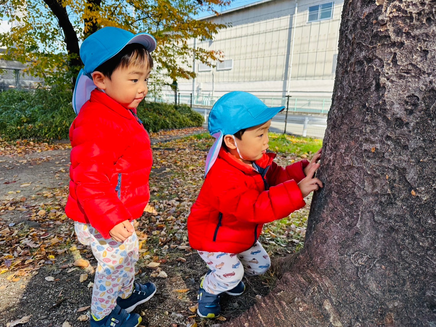 木の周りでもお友だちと追いかけっこ🌳