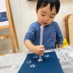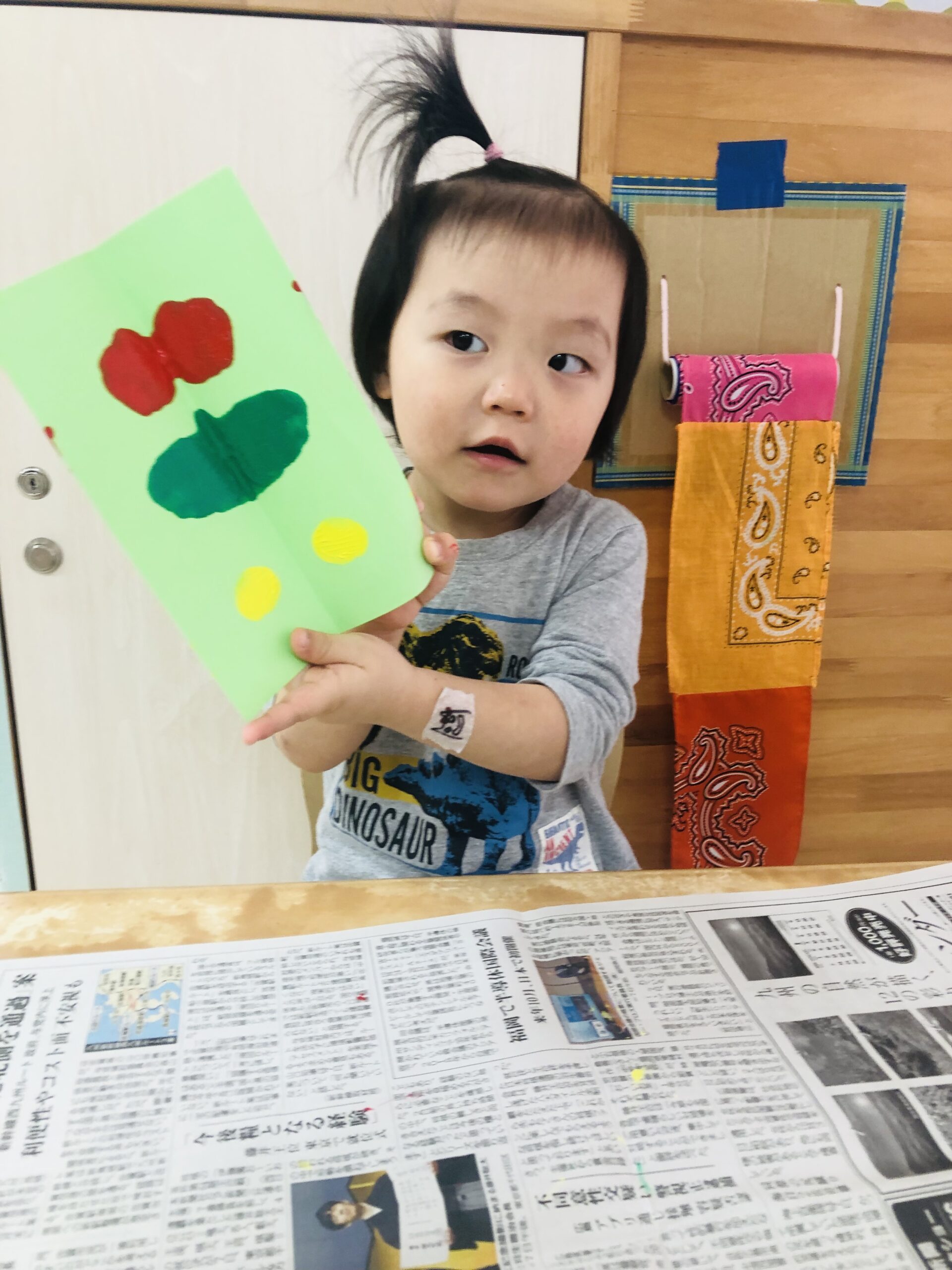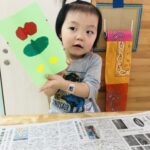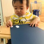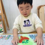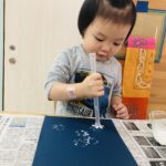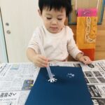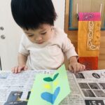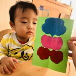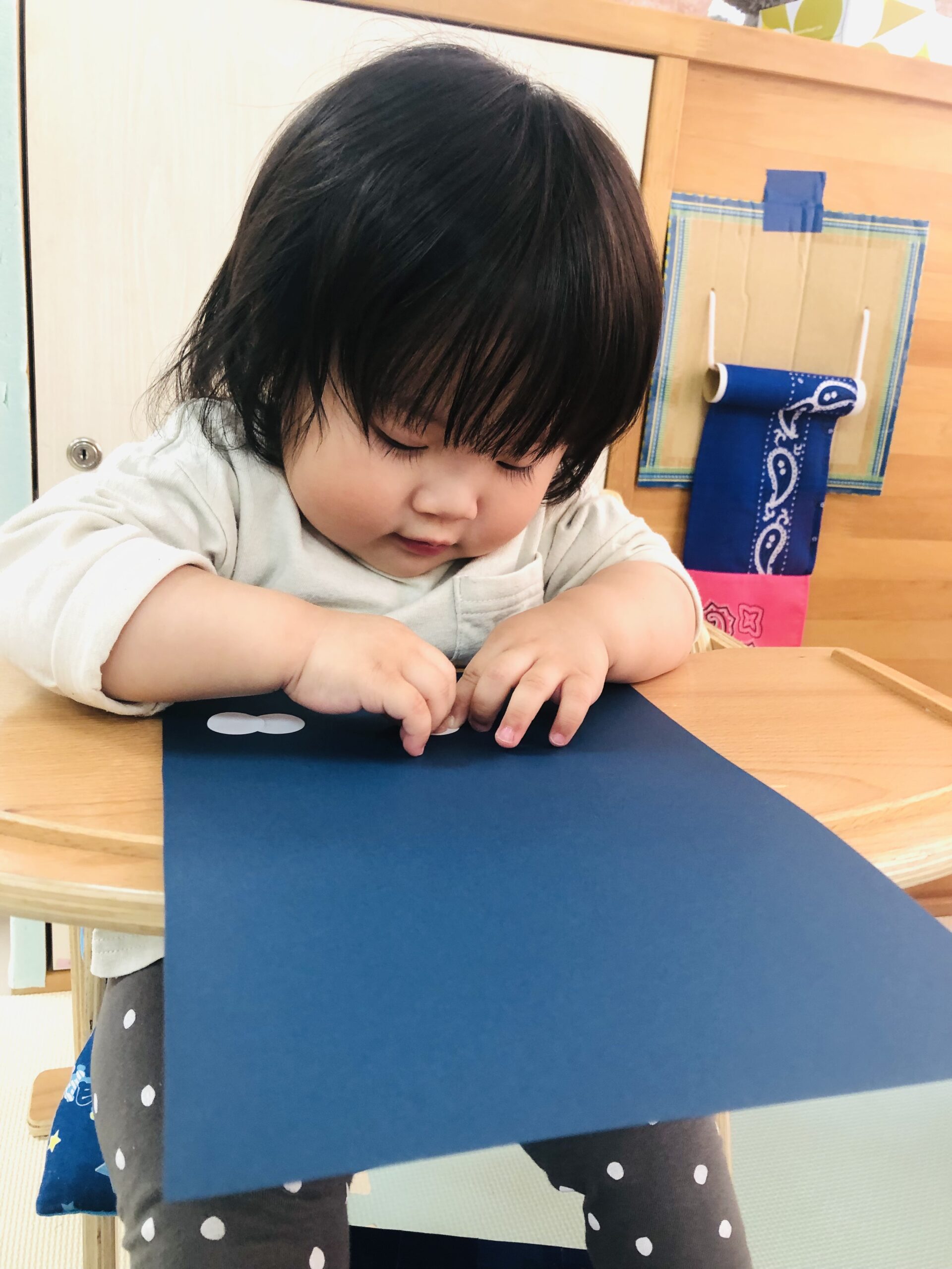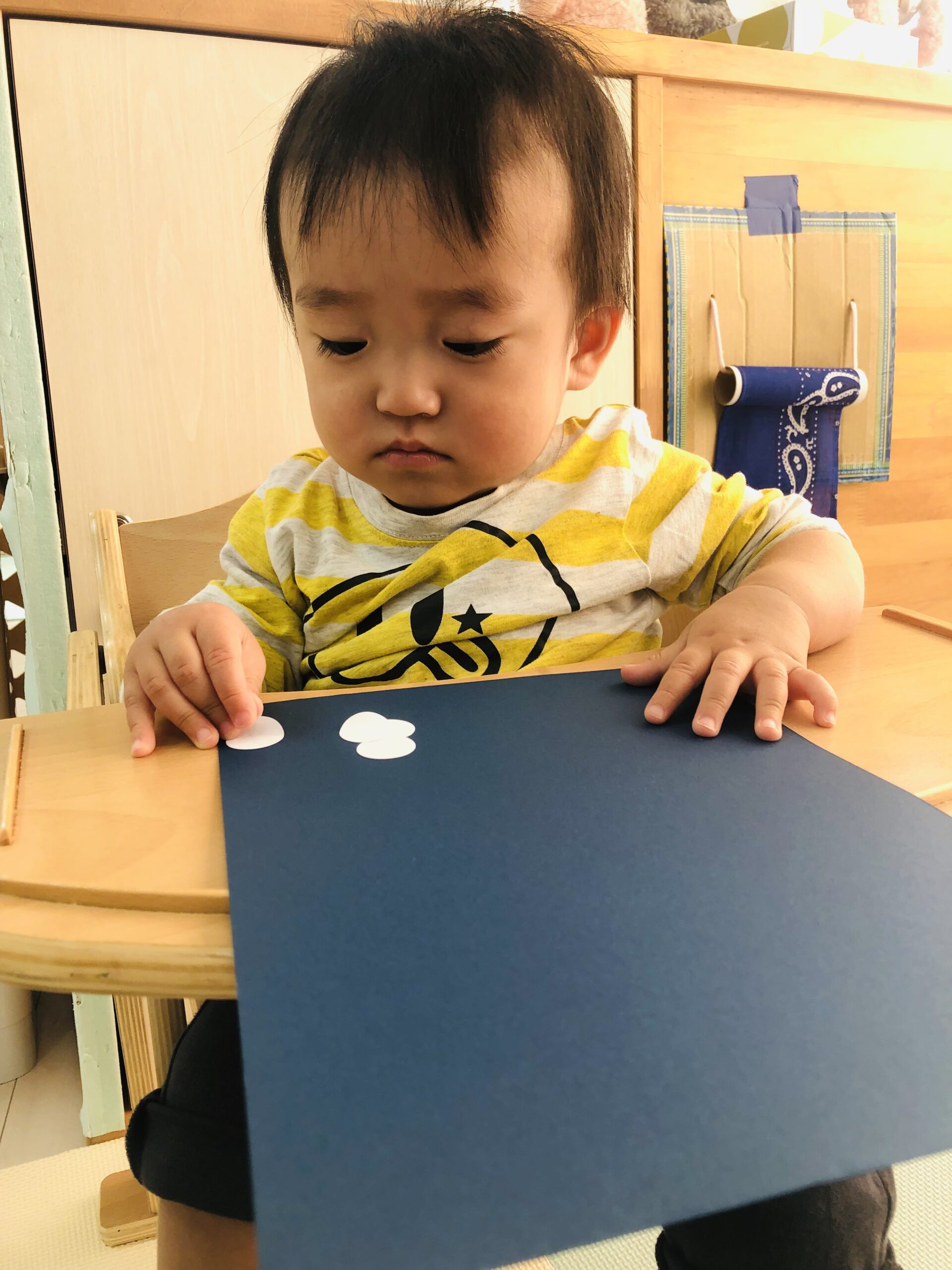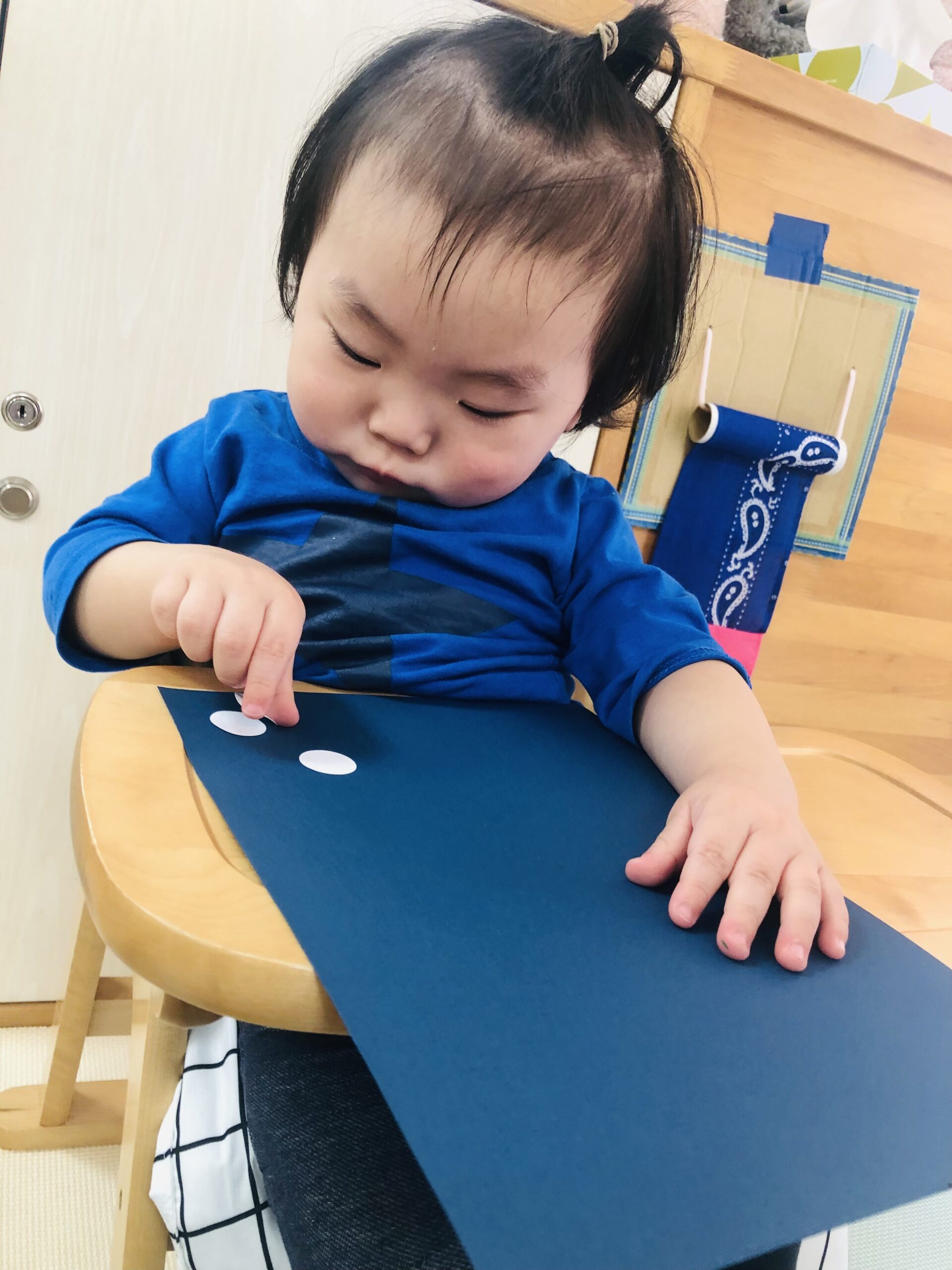 0歳児さんは丸シールをしました!上手に貼れていましたよ👏✨
