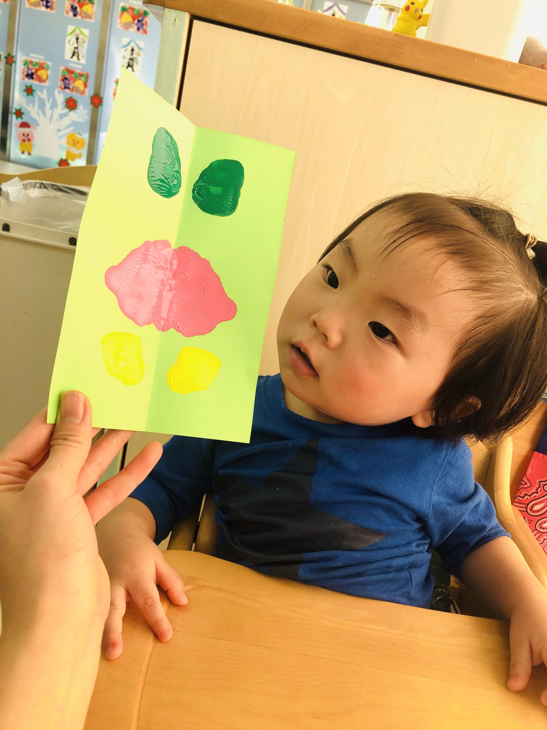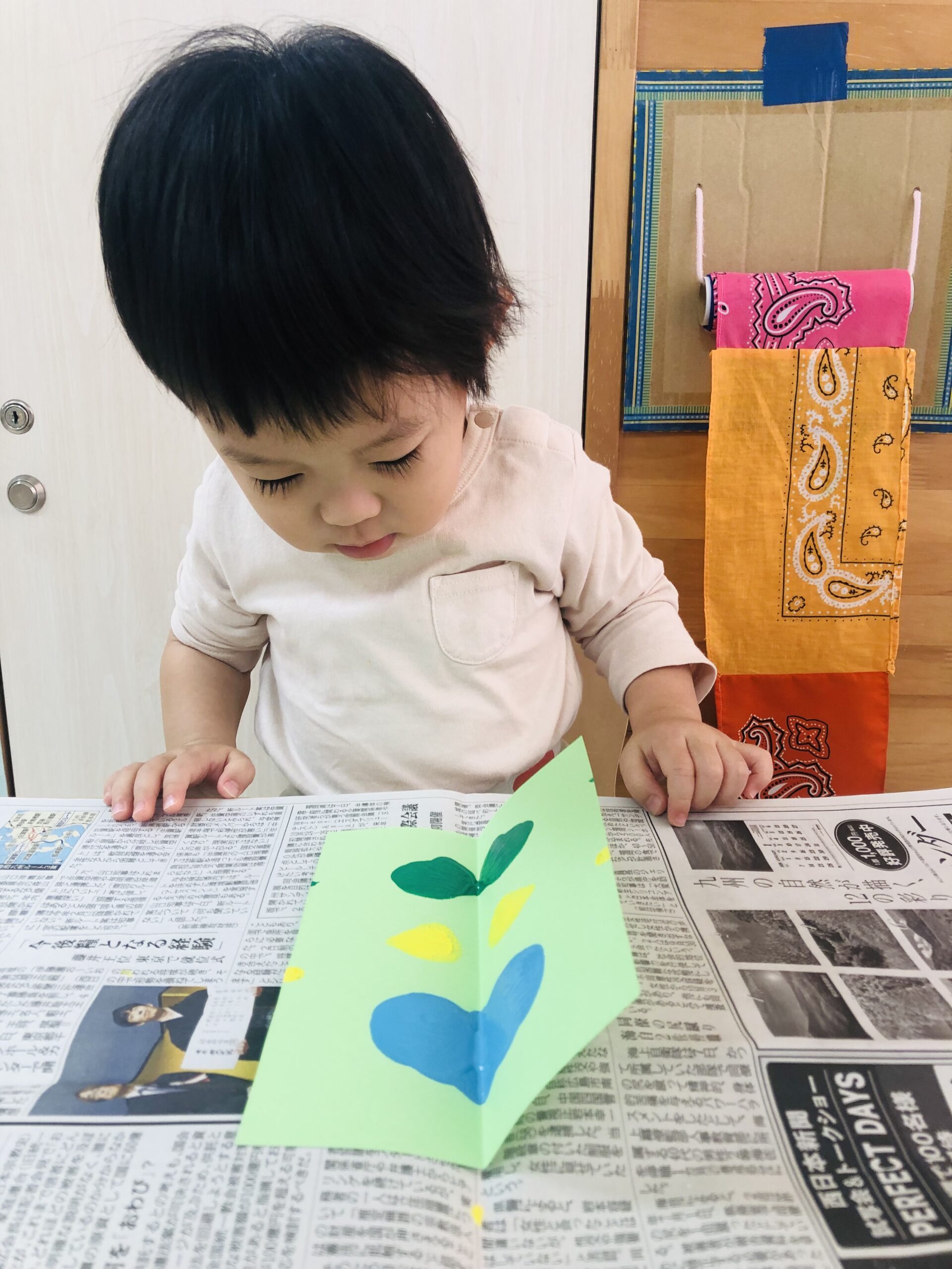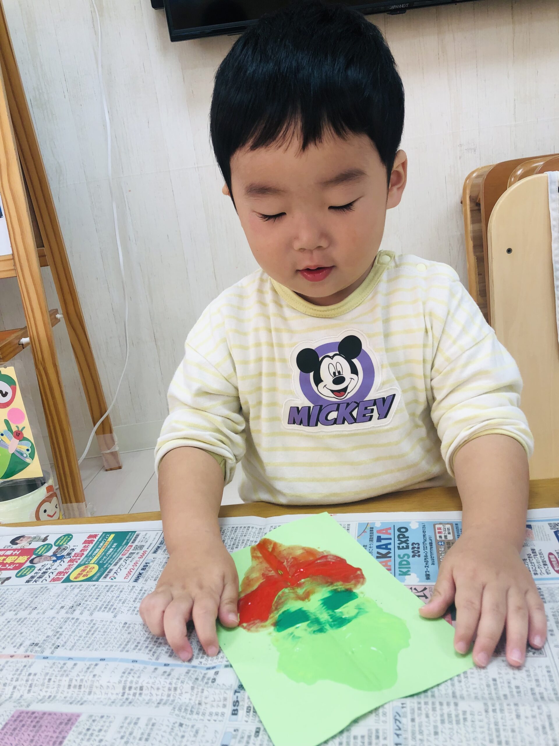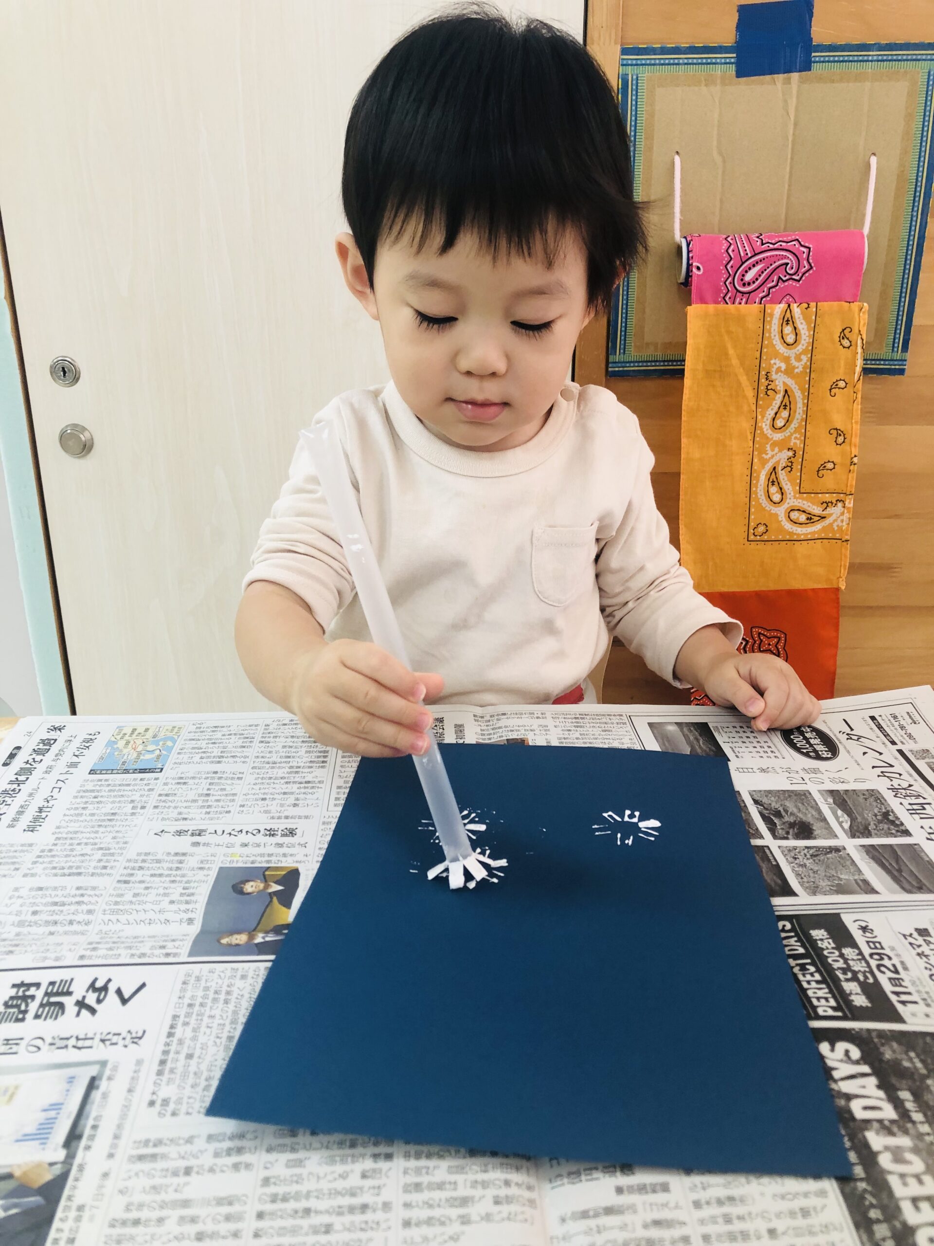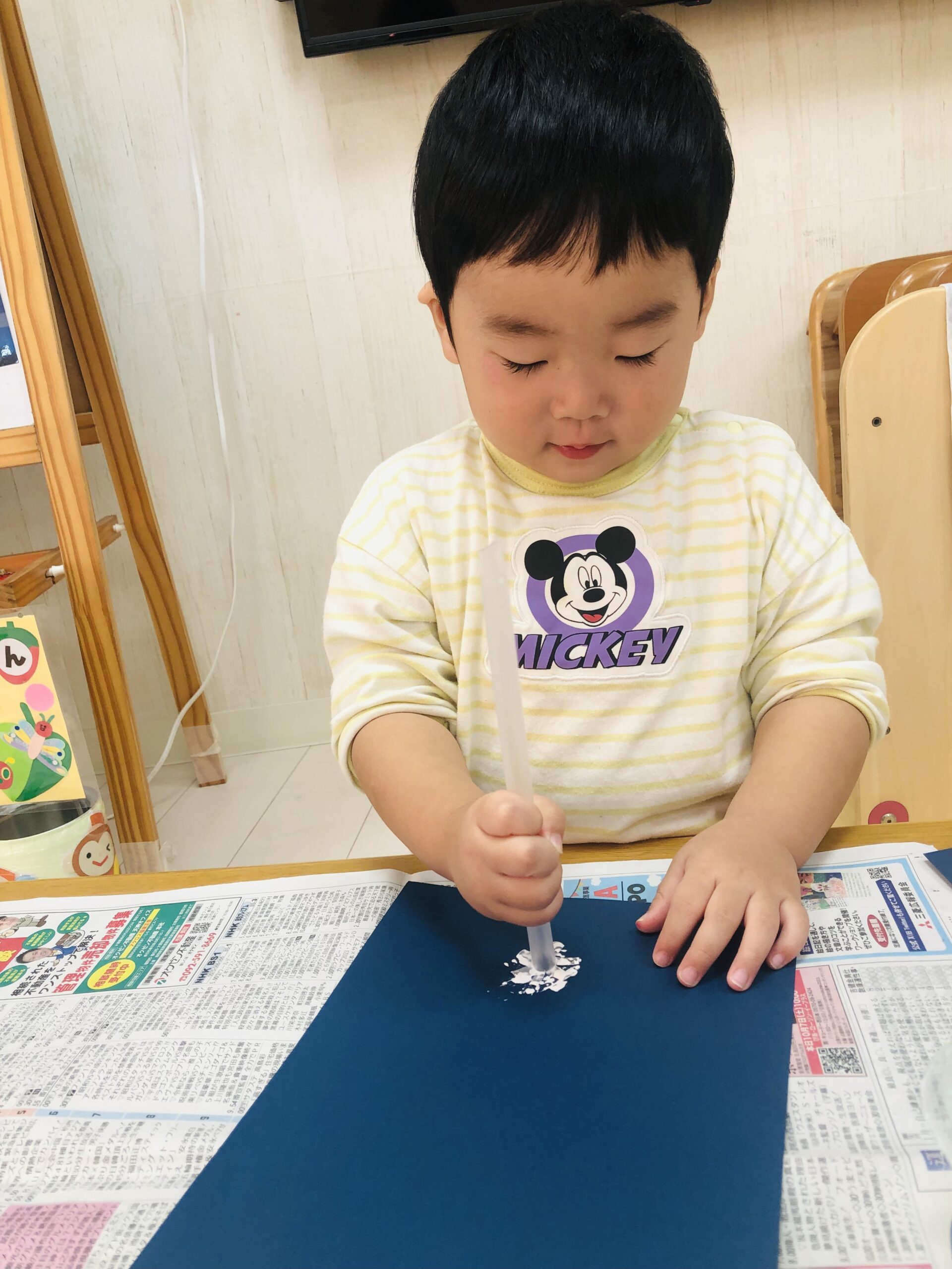 0歳児さんは丸シールをしました!上手に貼れていましたよ👏✨