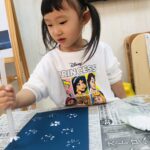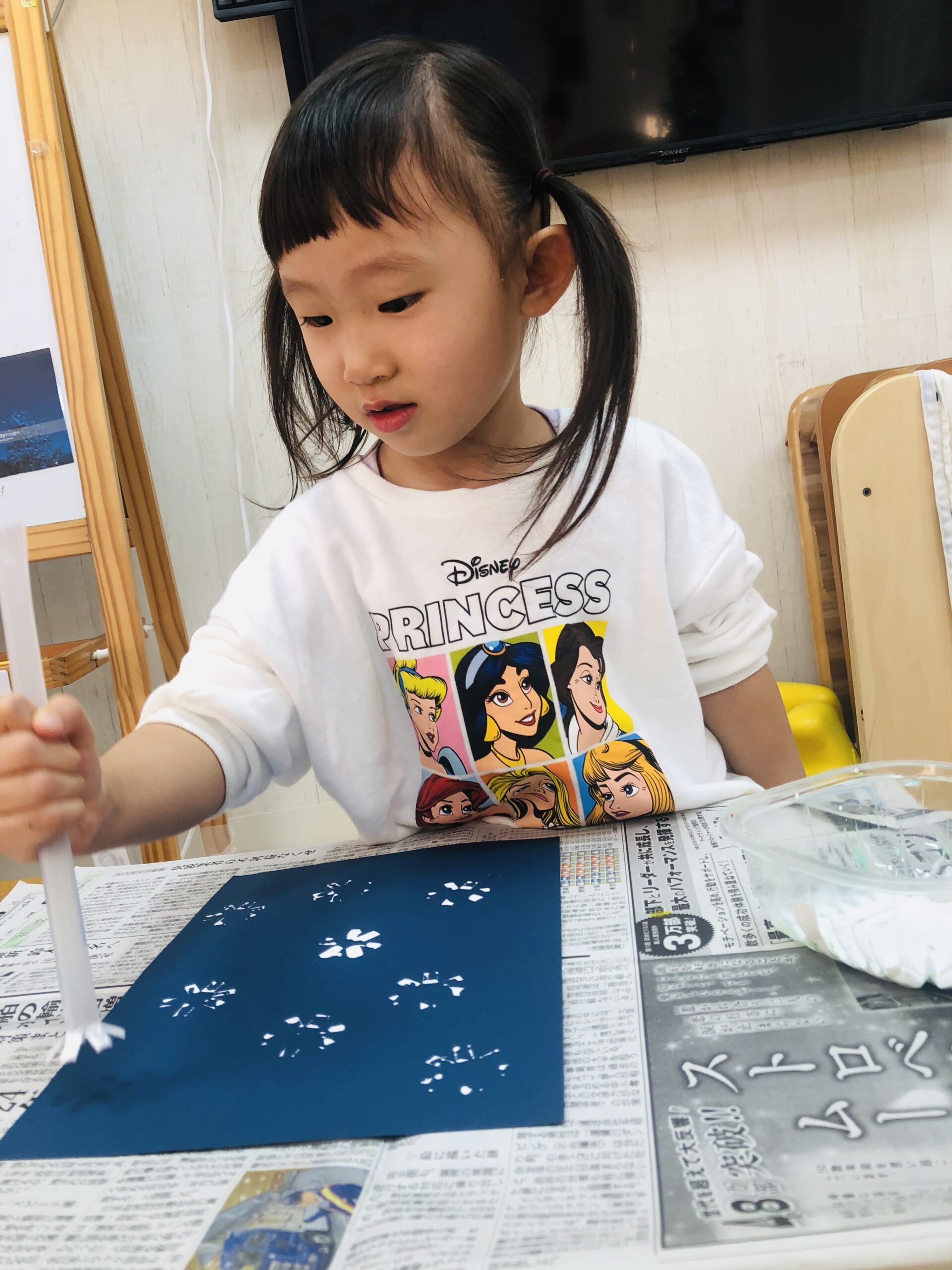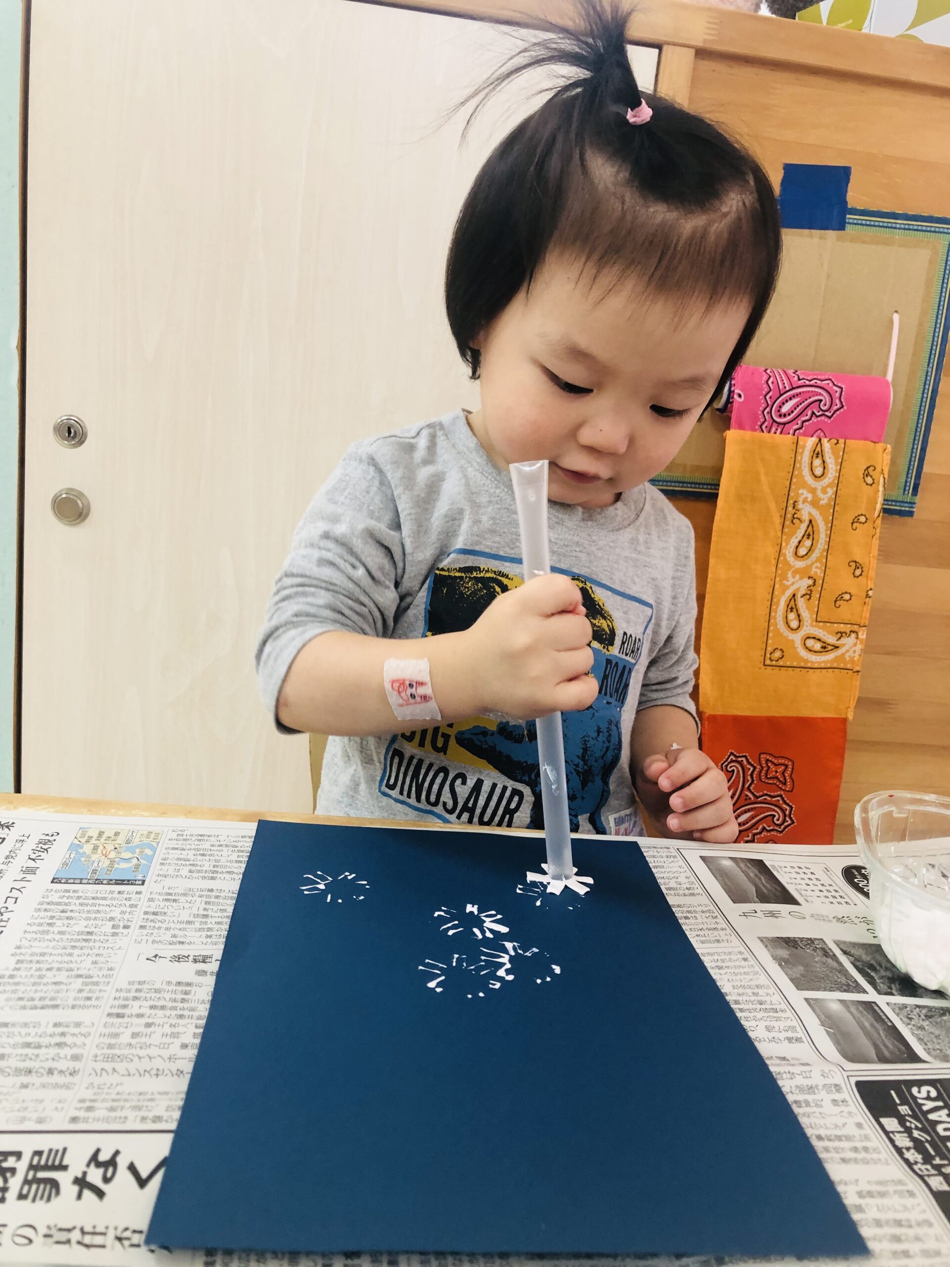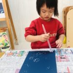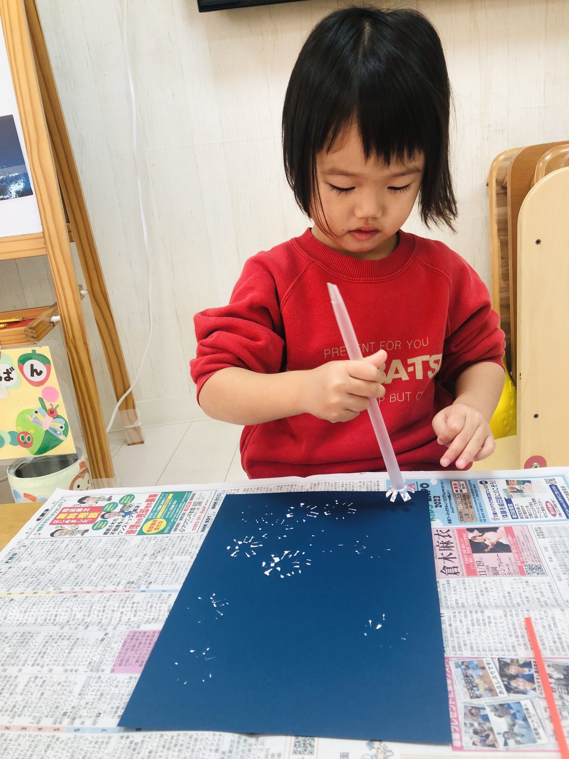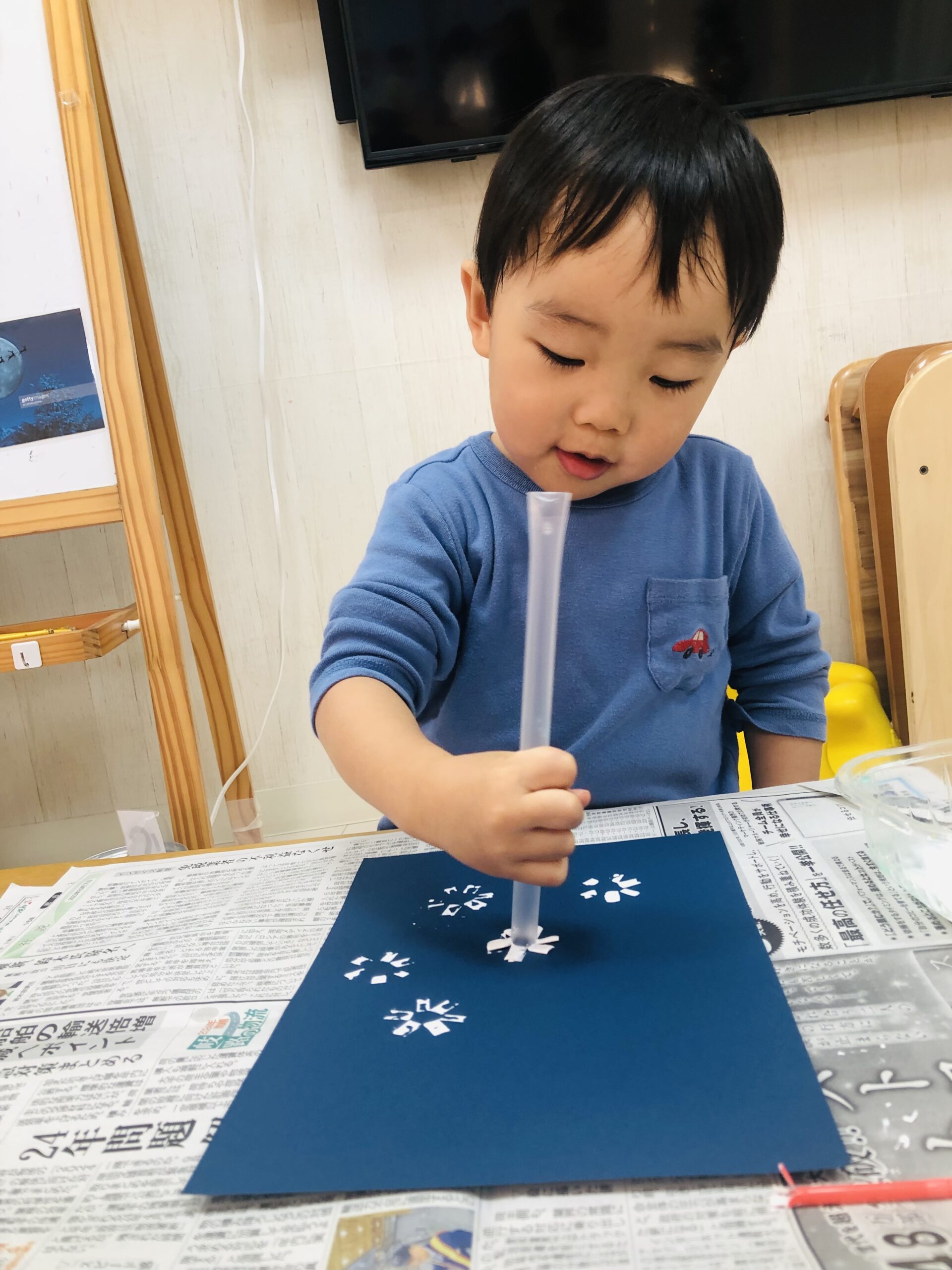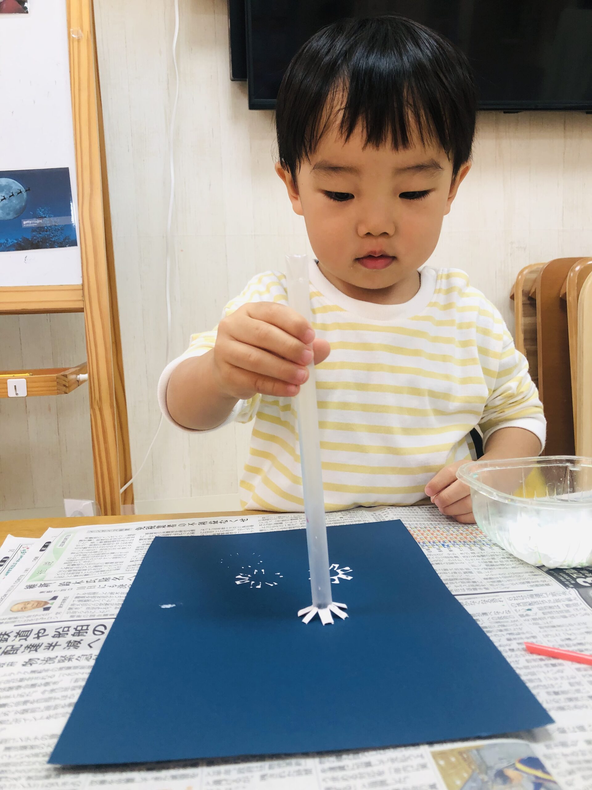 雪はストローを使ってスタンプしました❄️
