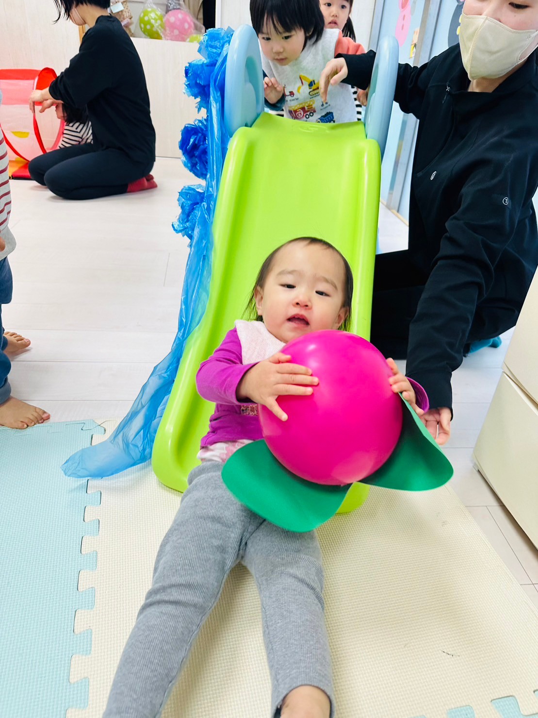 滑り台🛝ではみんなが桃🍑🍑を持って
