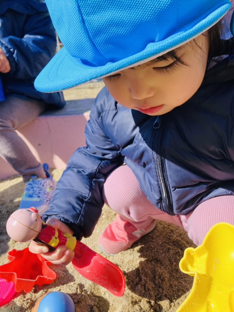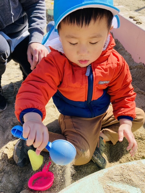 1歳さんは砂場で沢山遊びましたよ✨