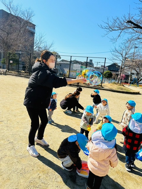 先生も大きなシャボン玉を作りましたよ🪄🫧