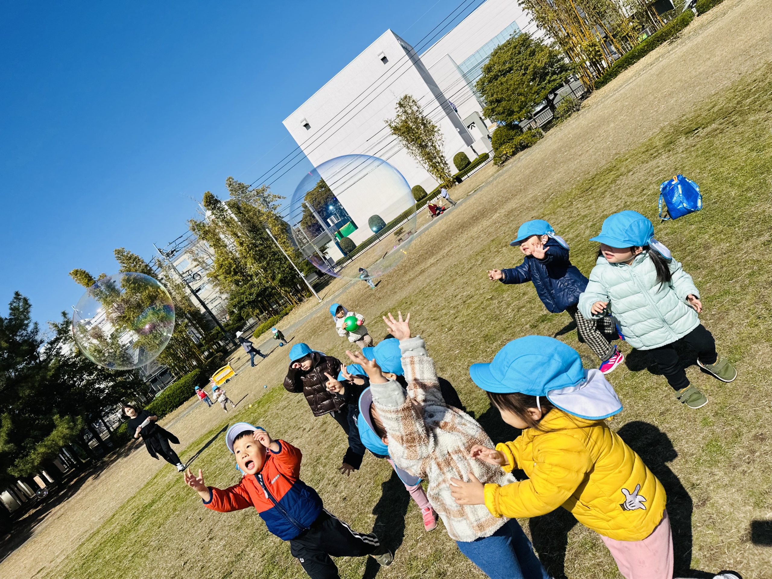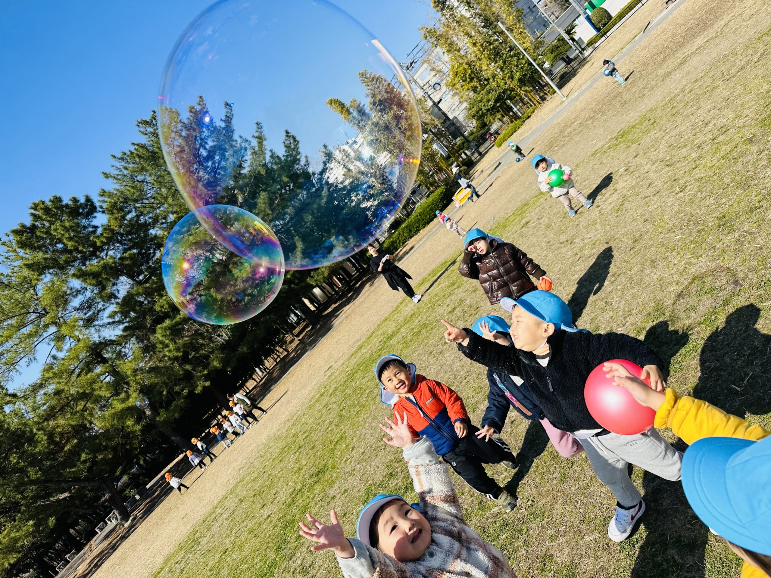 大好きなボール遊びと大きなシャボン玉遊びもしました😊