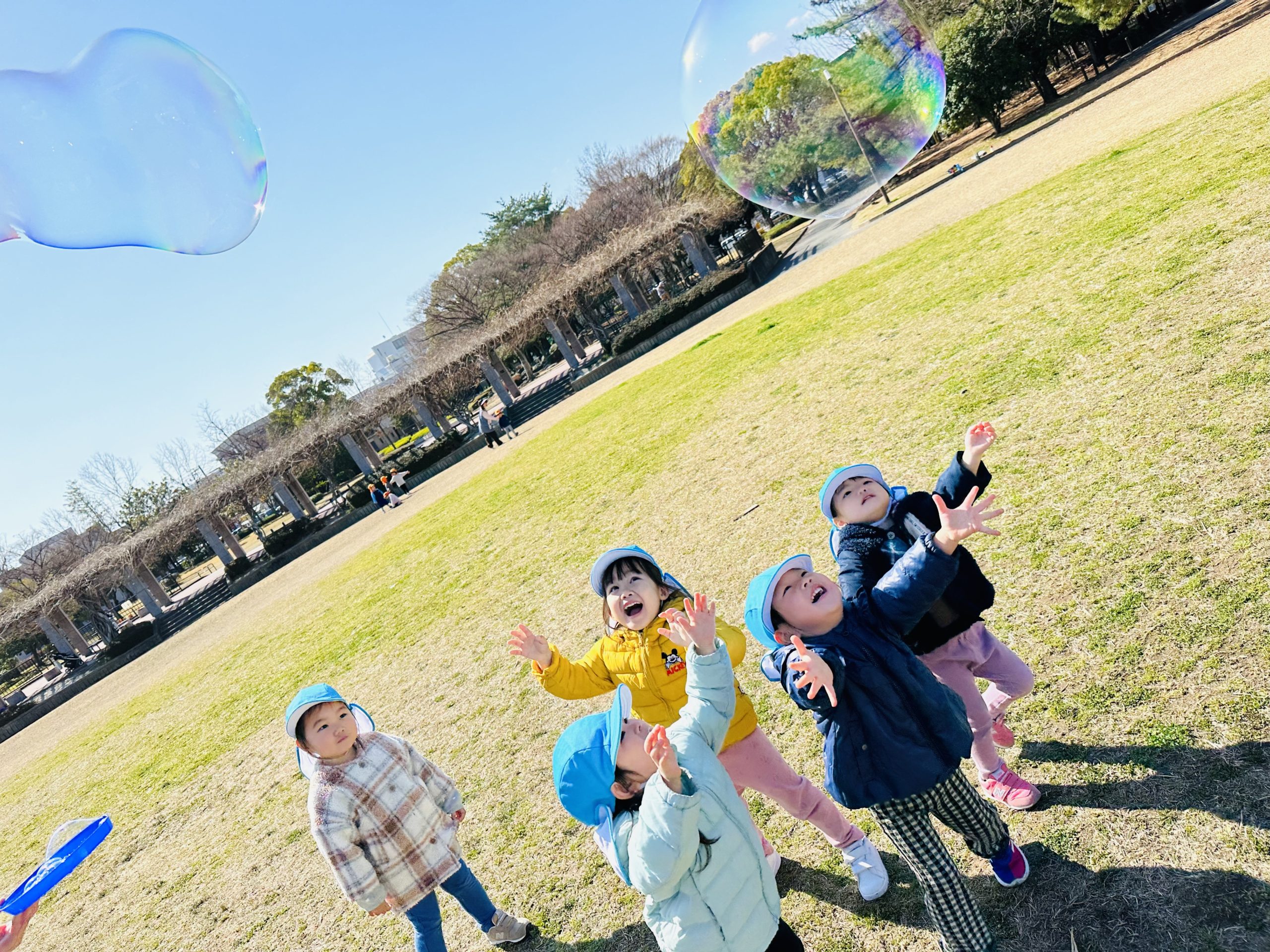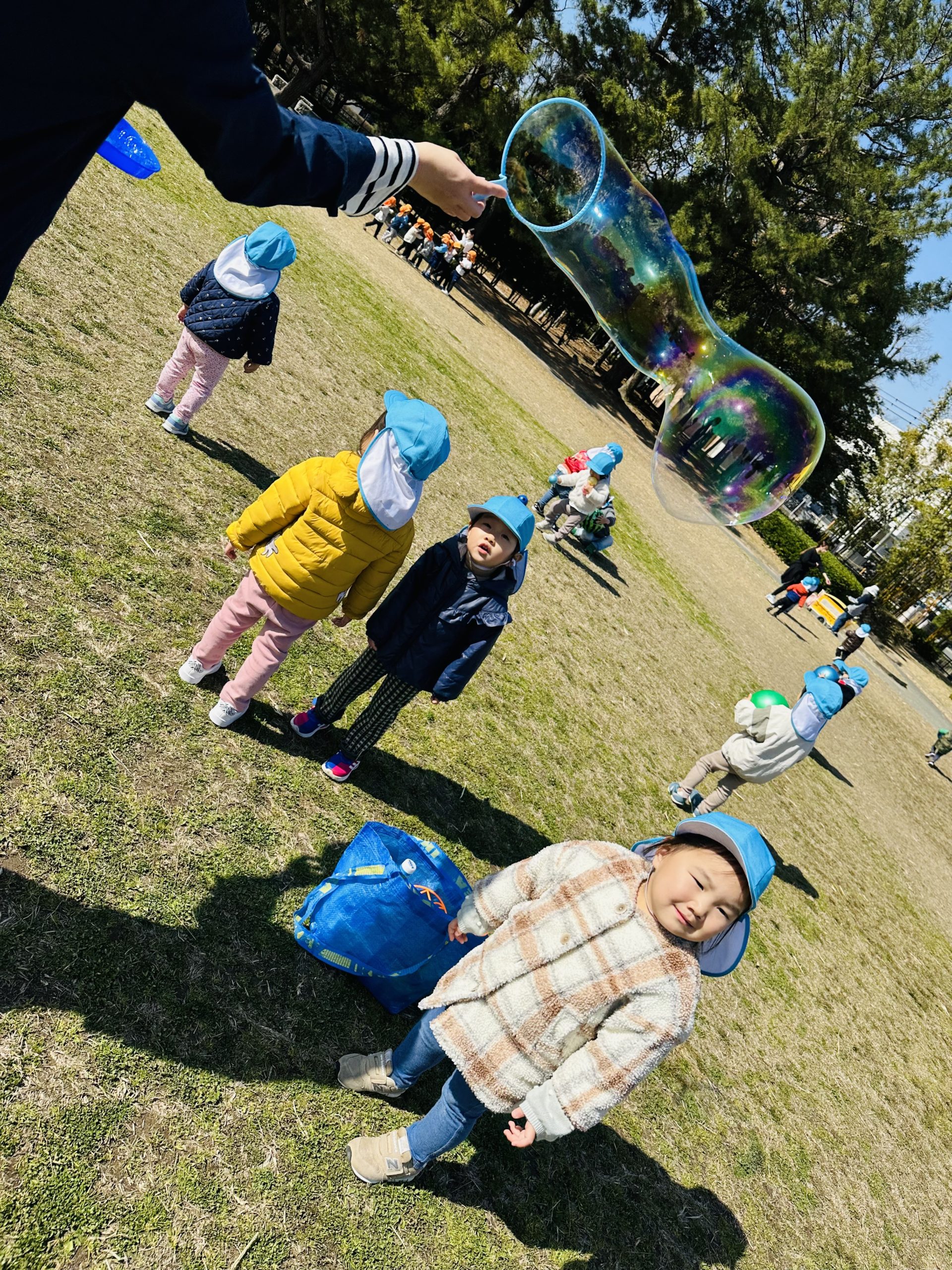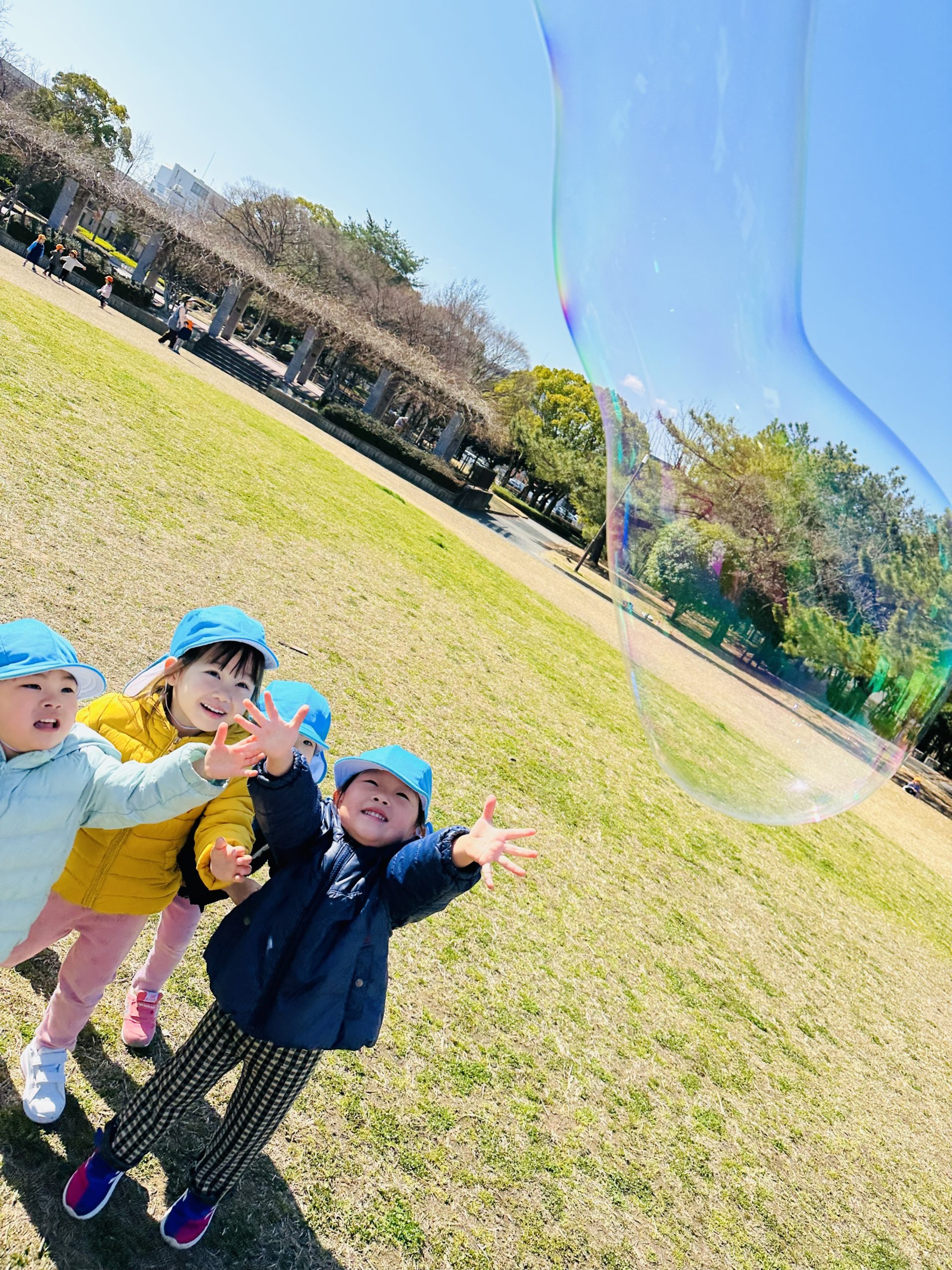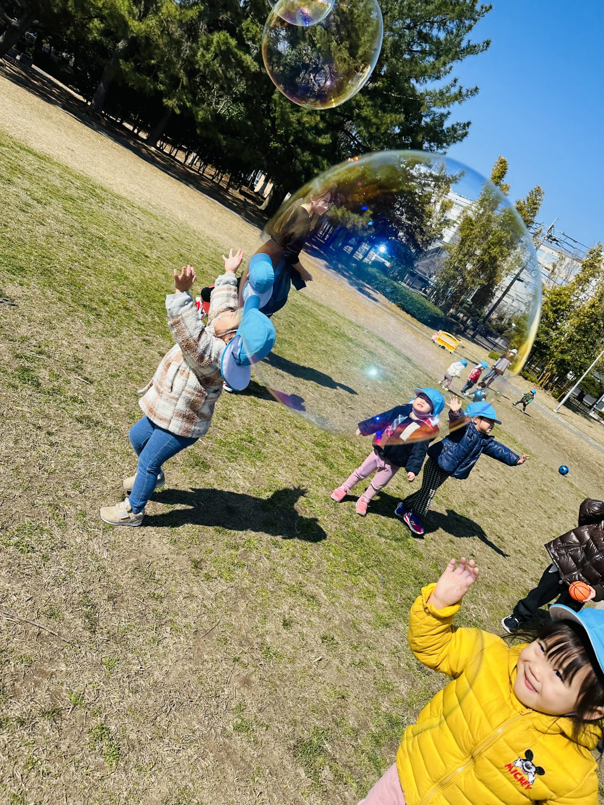 心地よい風が吹いていたので、大きな大きなシャボン玉が沢山できましま(^^)