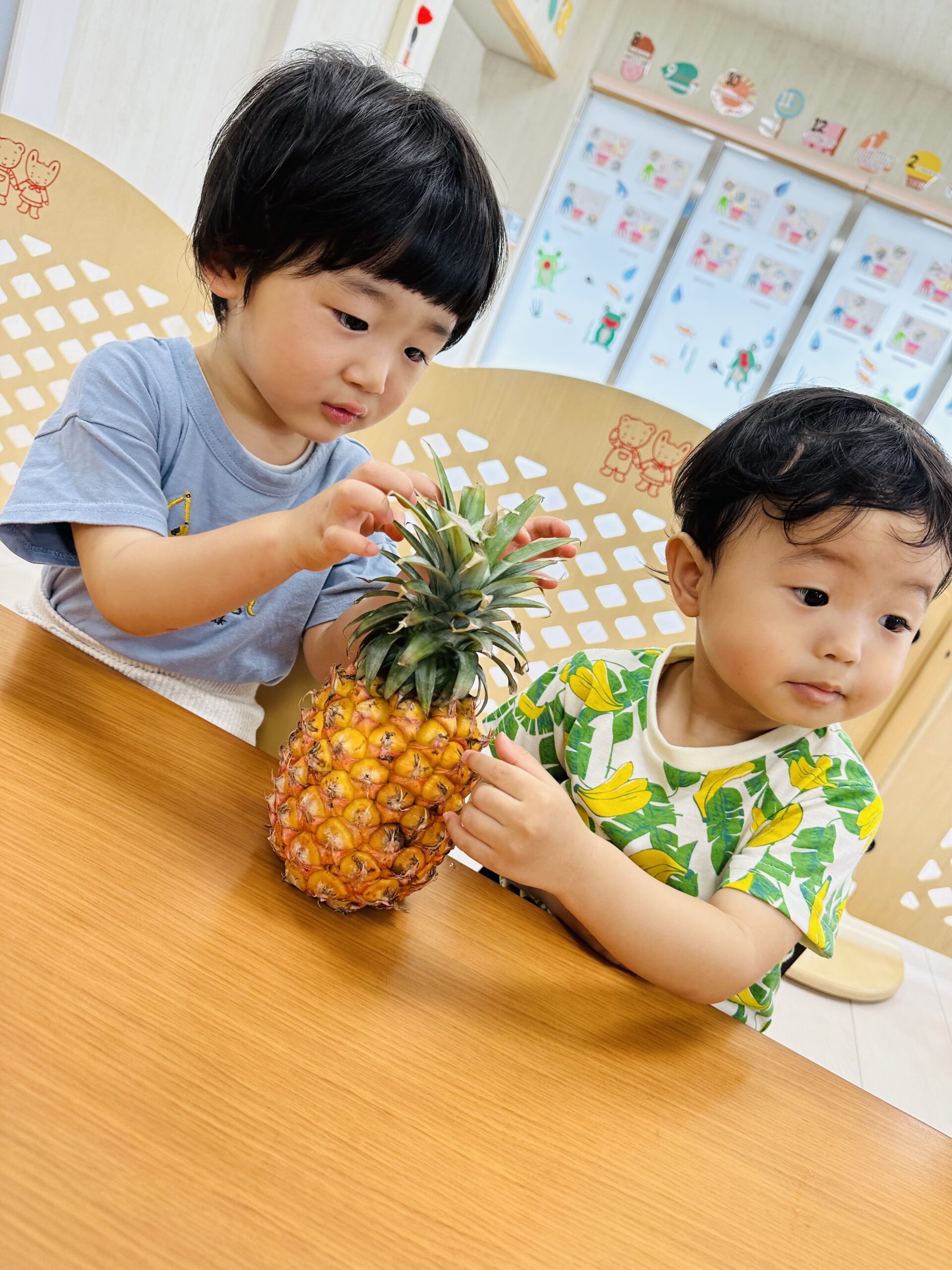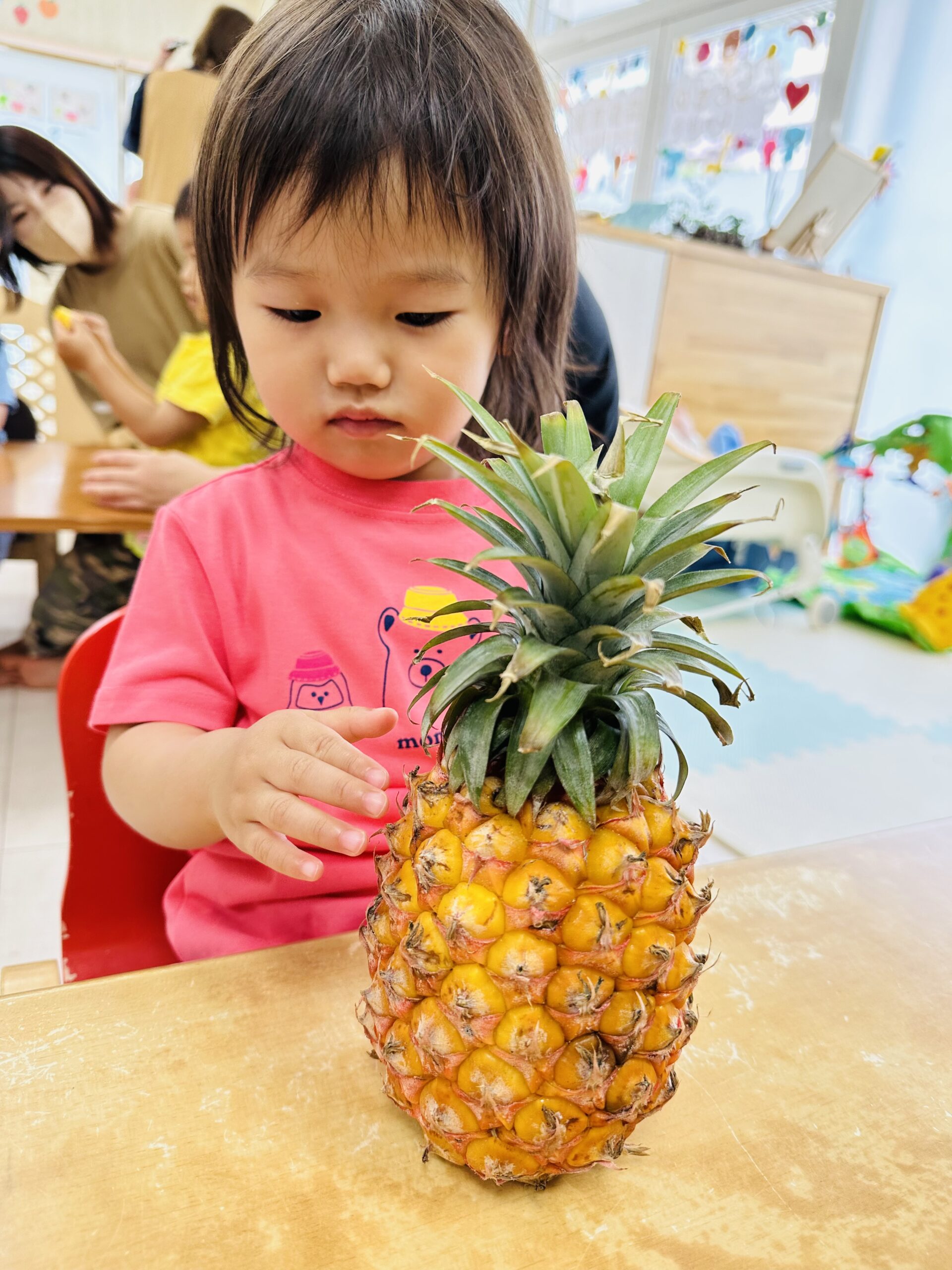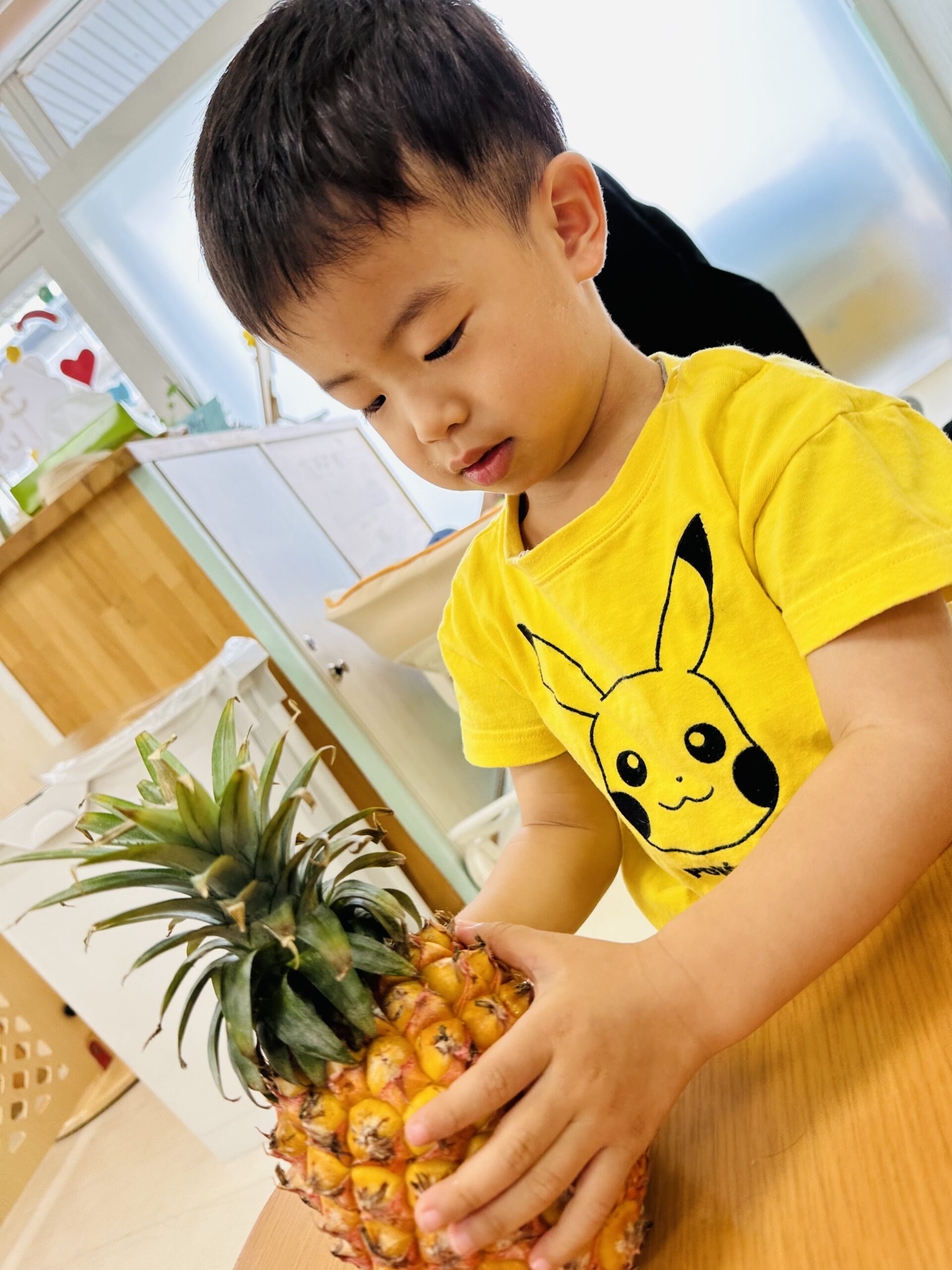 今日はパインアップルに触れる食育をしました(*^^*)