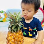 普段はなかなか見れないパインアップルの皮も興味しんしんに観察していましたよ😊