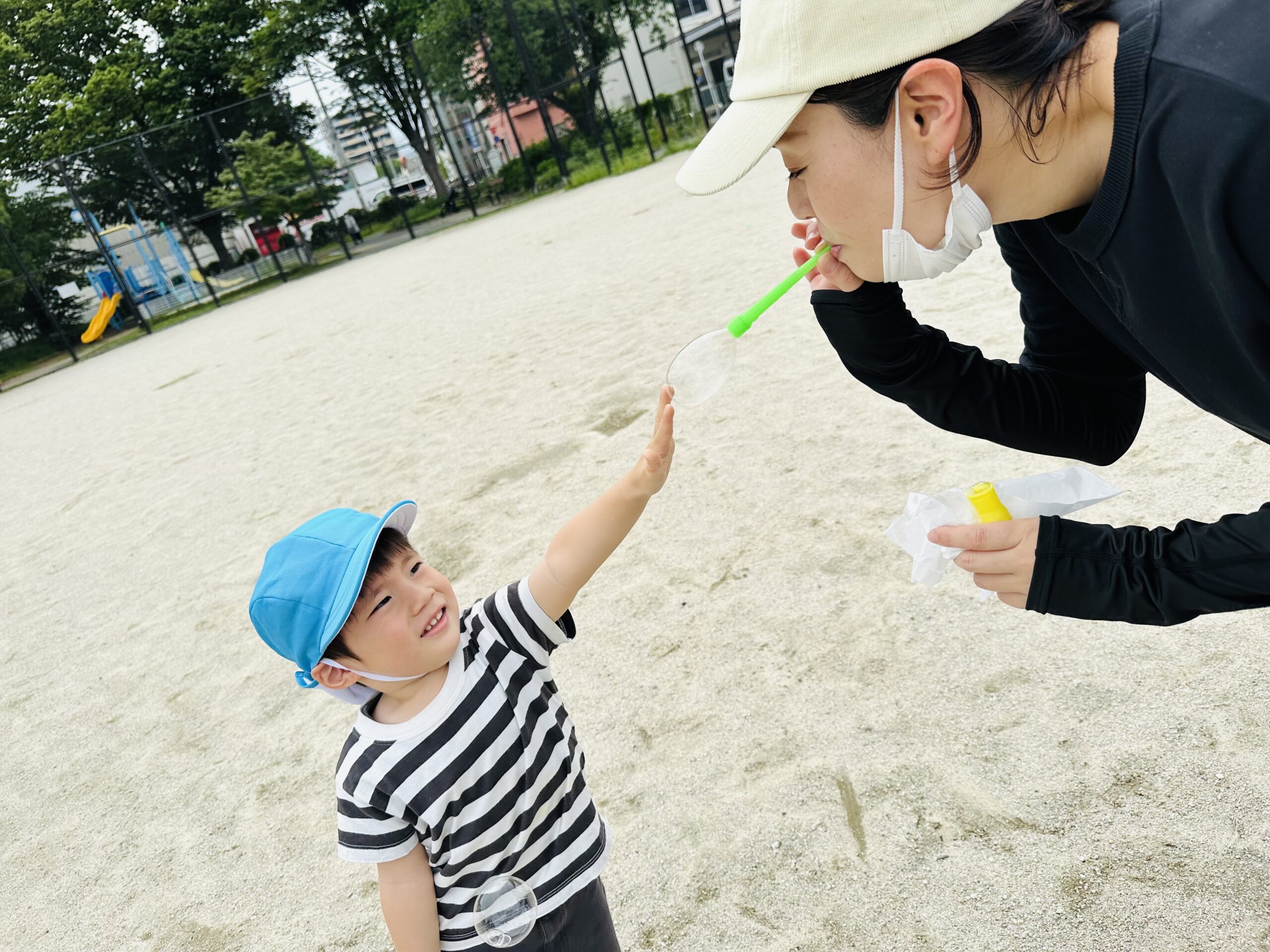 風が強くて、シャボン玉🪄🫧はすぐにお空にとんでいきました🌈