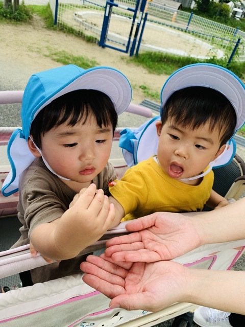 小さなダンゴ虫さん♡♡皆の手の上を動き回っていましたよ🤗