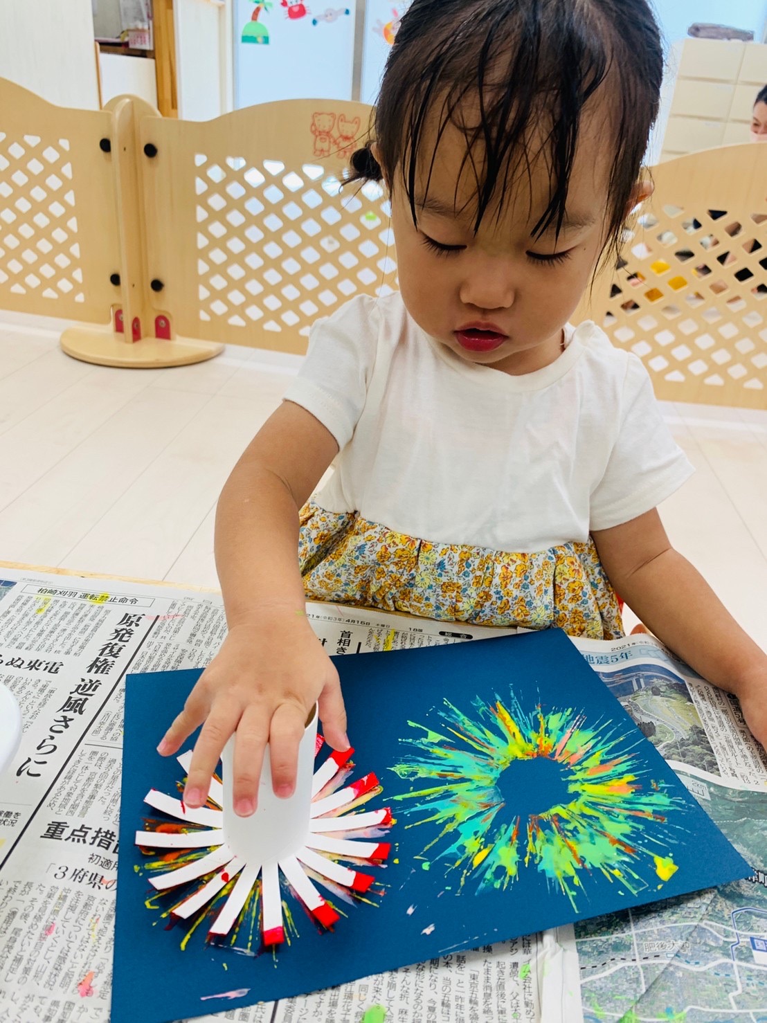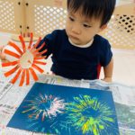 絵の具がきれいに花火になって、子ども達は製作を楽しんでいました🎇