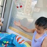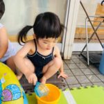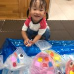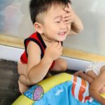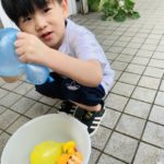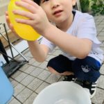 水風船🎈がびよーんと伸びてパチンと割れ、水が吹き出してビックリする1歳児さん😆