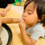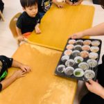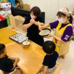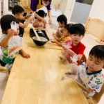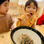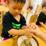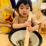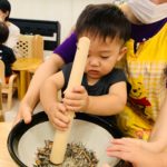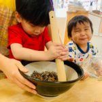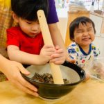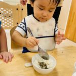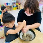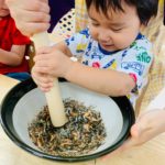 2歳児さんは自分でできたり、すり鉢をそっと支えてくれる子もいました🥰