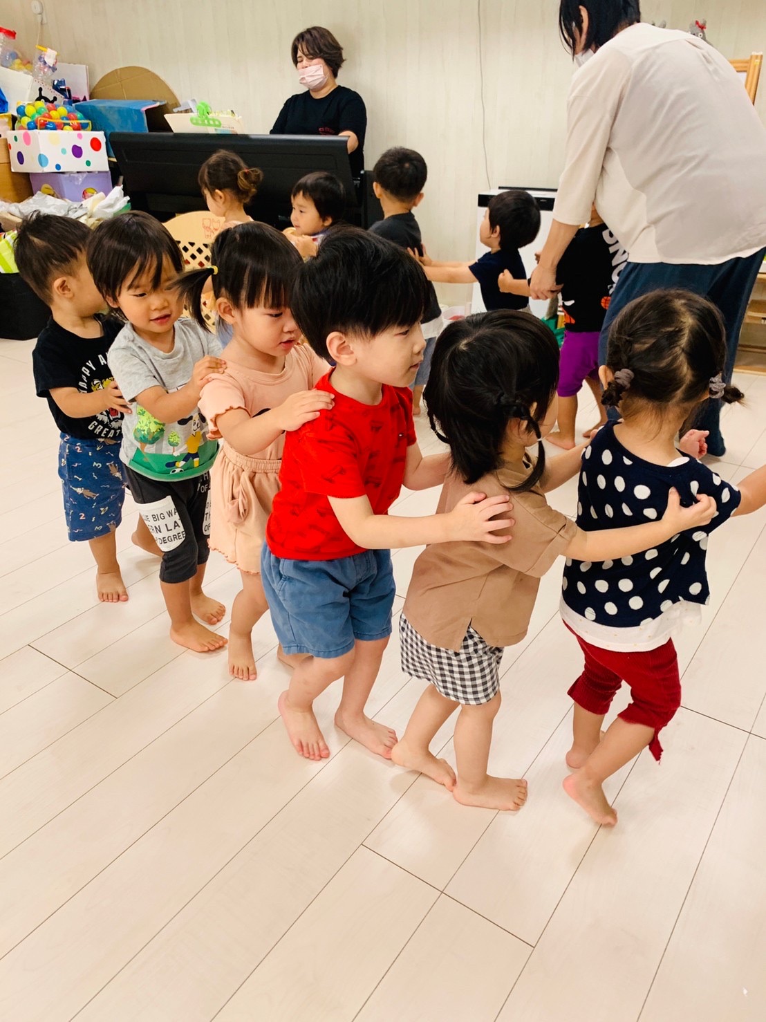 さんぽの歌に合わせて友達と手を繋いだり、電車にもなりました🚃