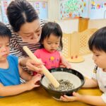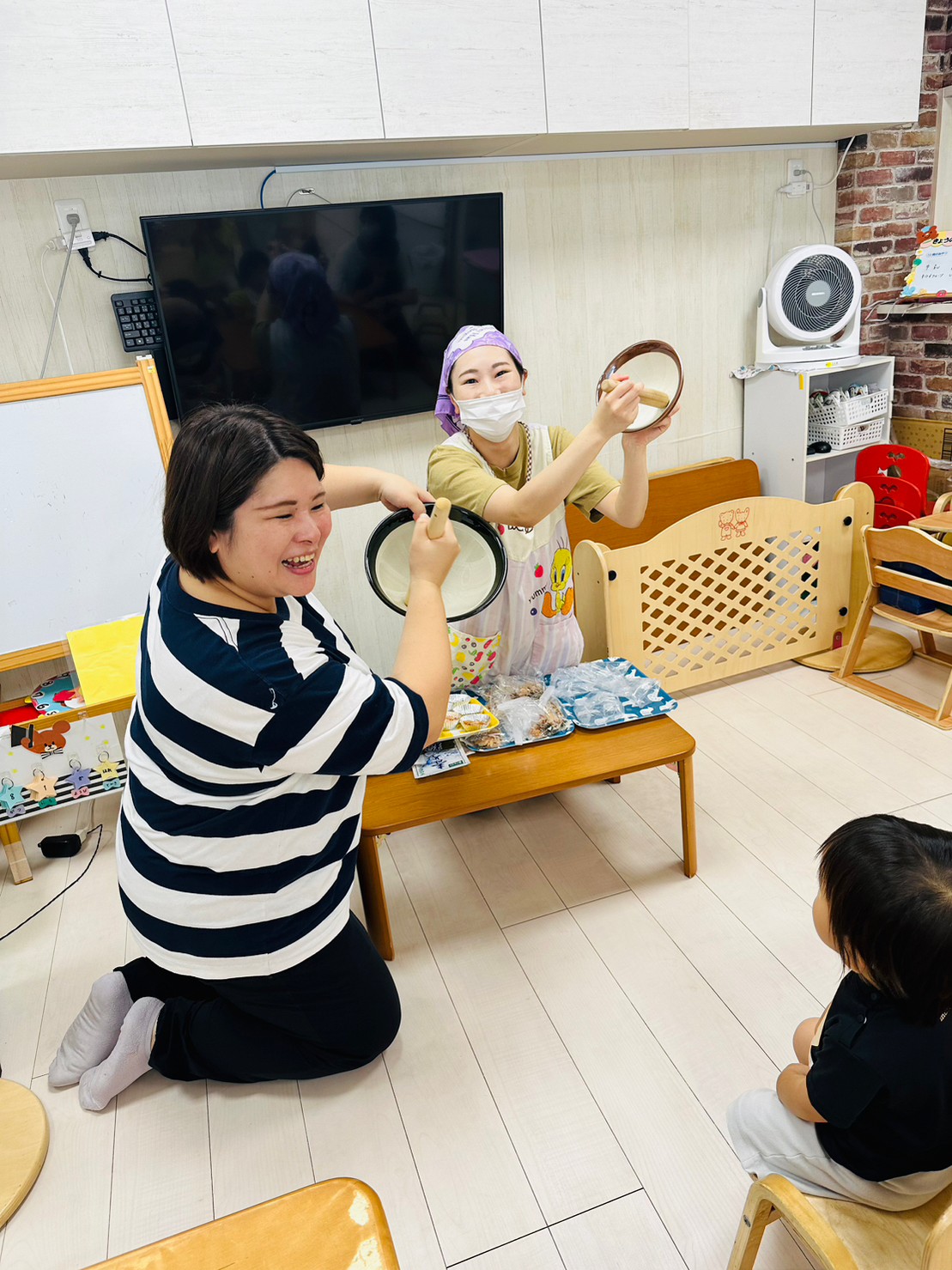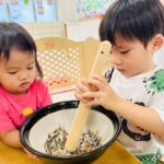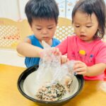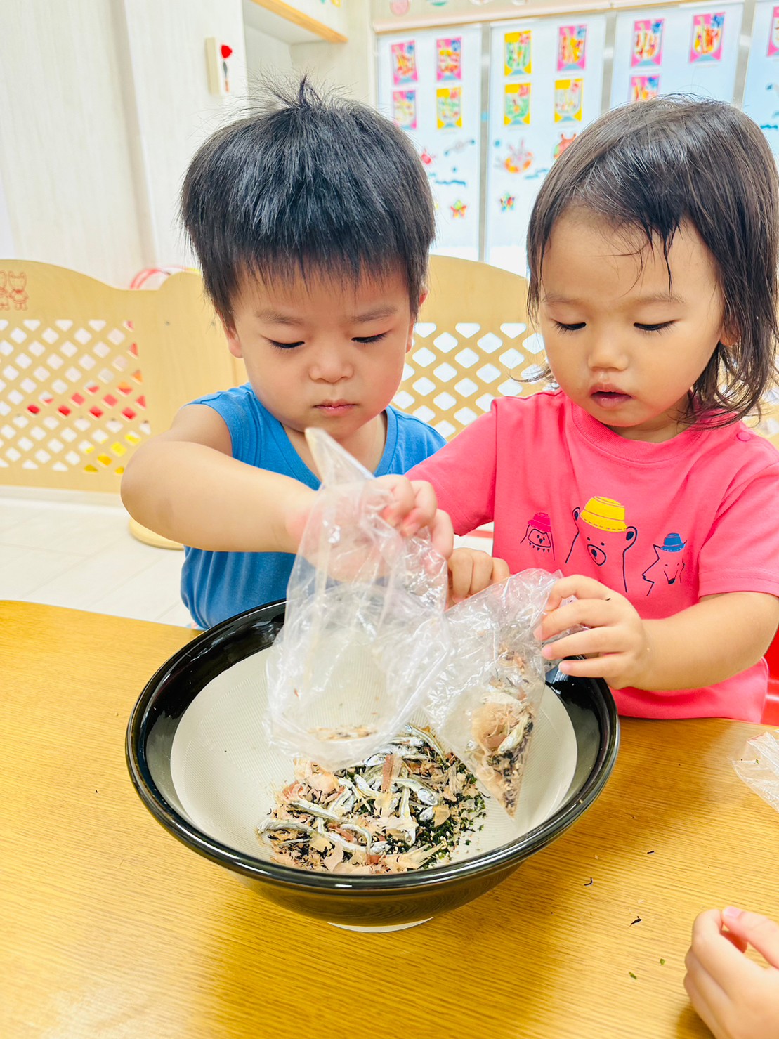 わかめやいりこをビニールに入れてふりふり〜🎵