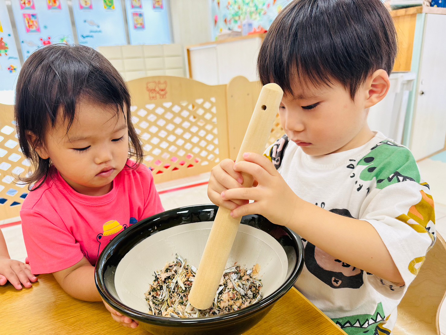 自分達で作ったふりかけは給食で美味しく食べたよ✨