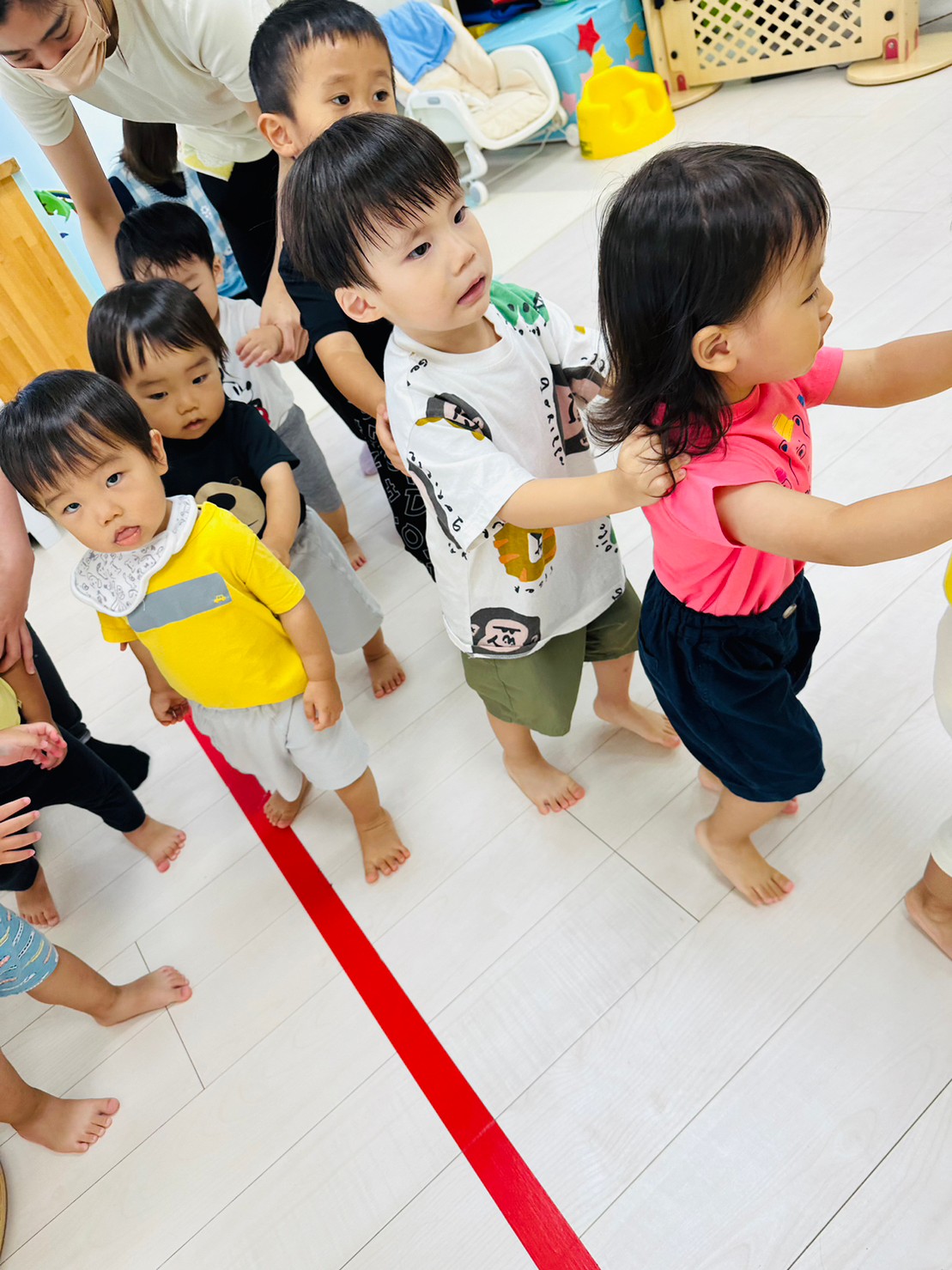 音楽に合わせてゾウさんや電車などの動きを楽しんでいましたよ♡