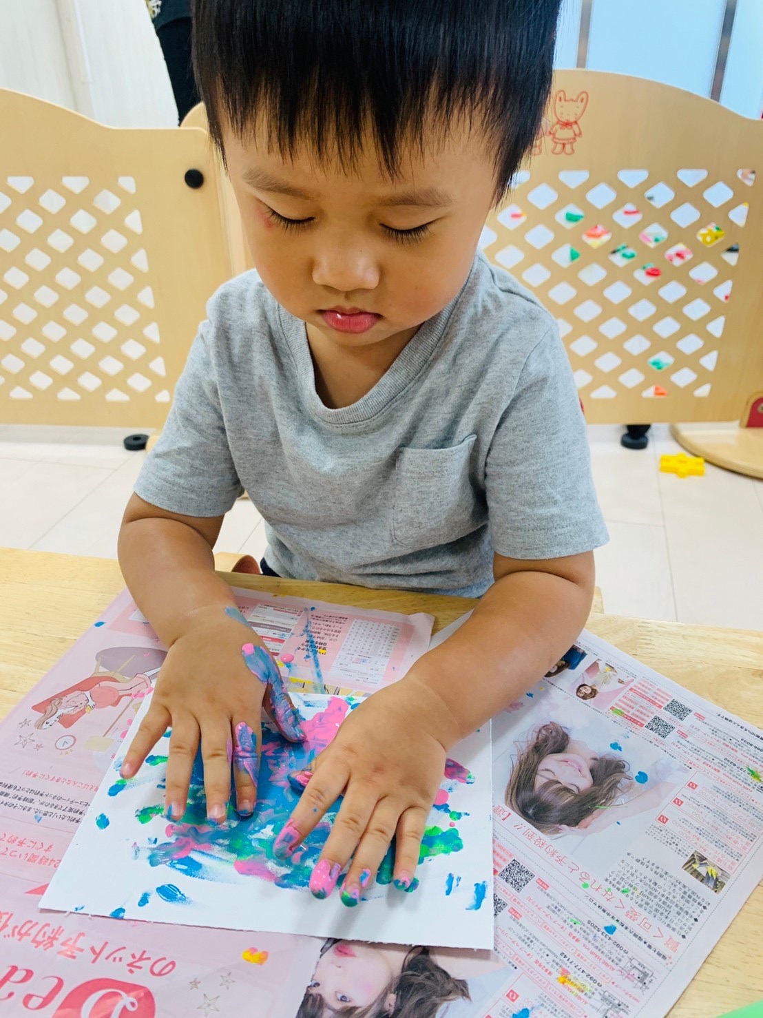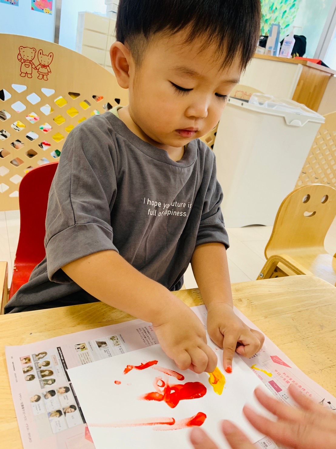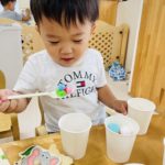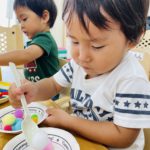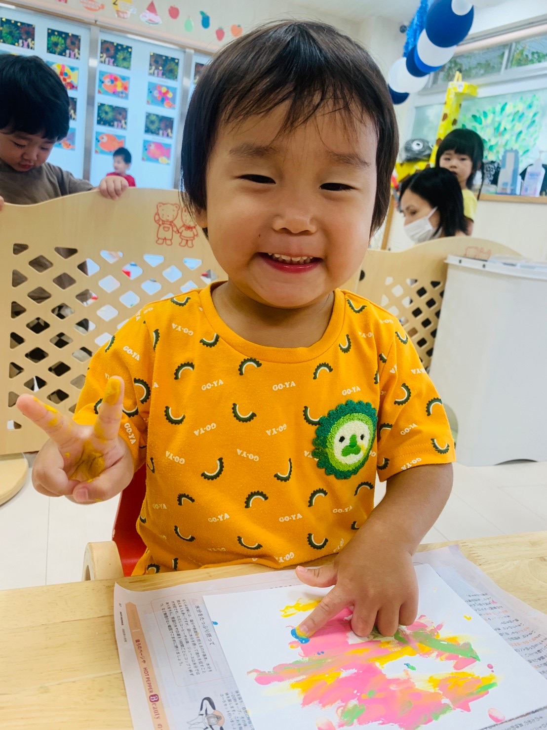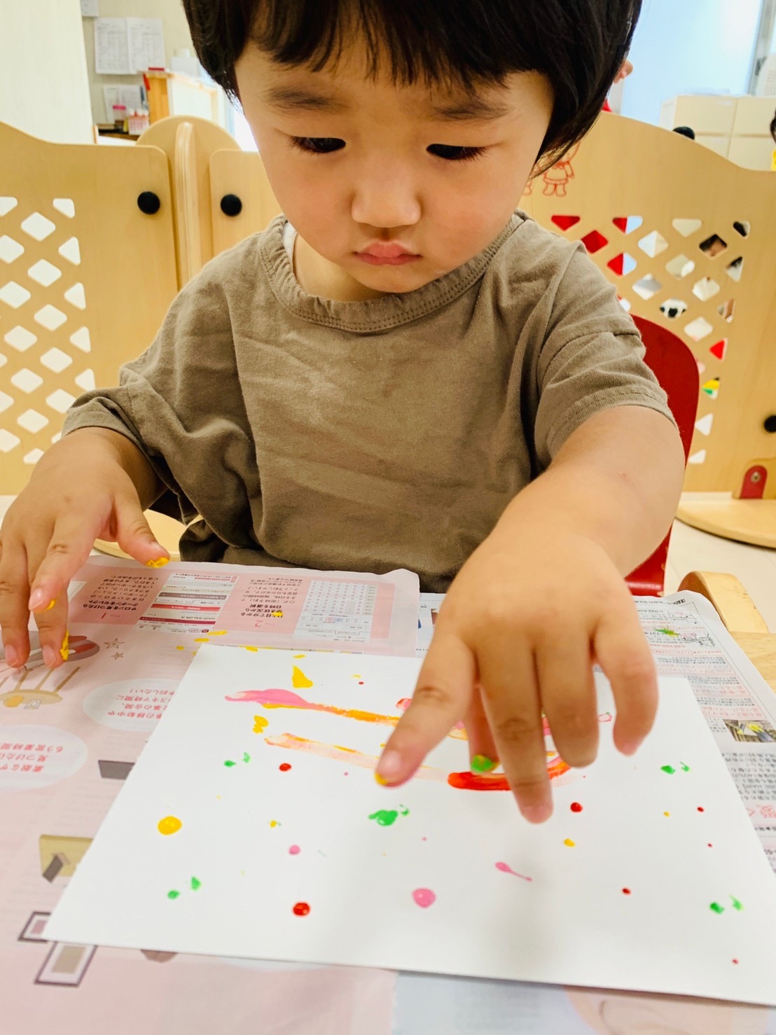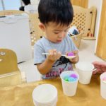 楽しく絵の具をしています☺️