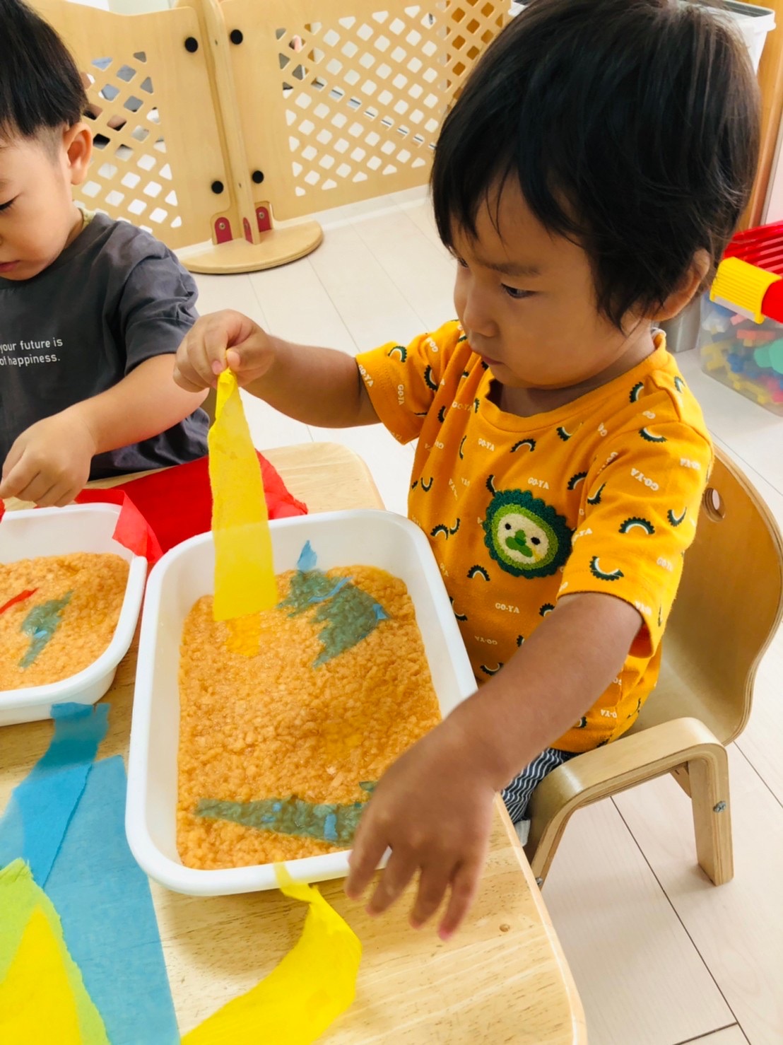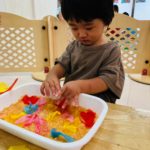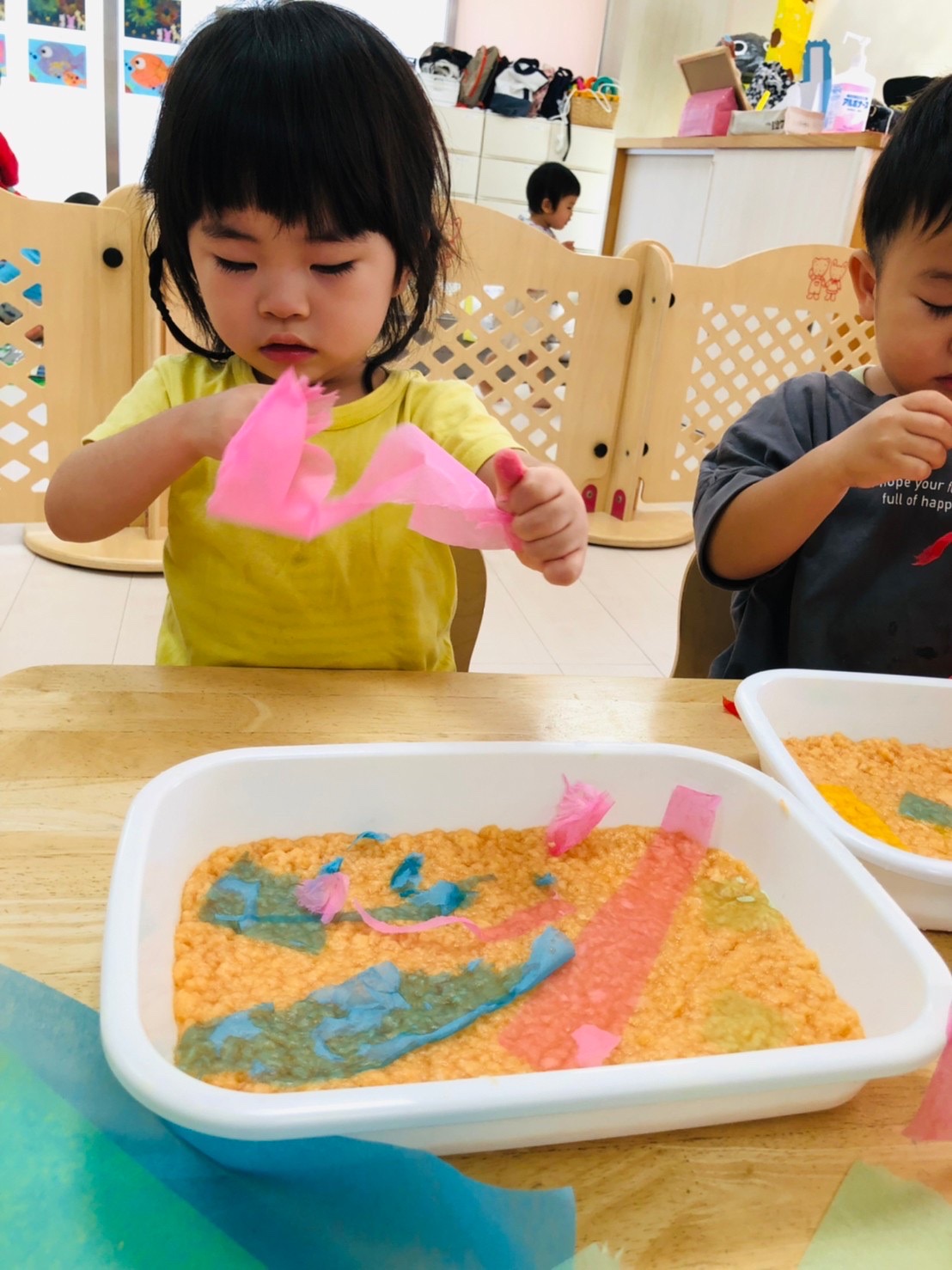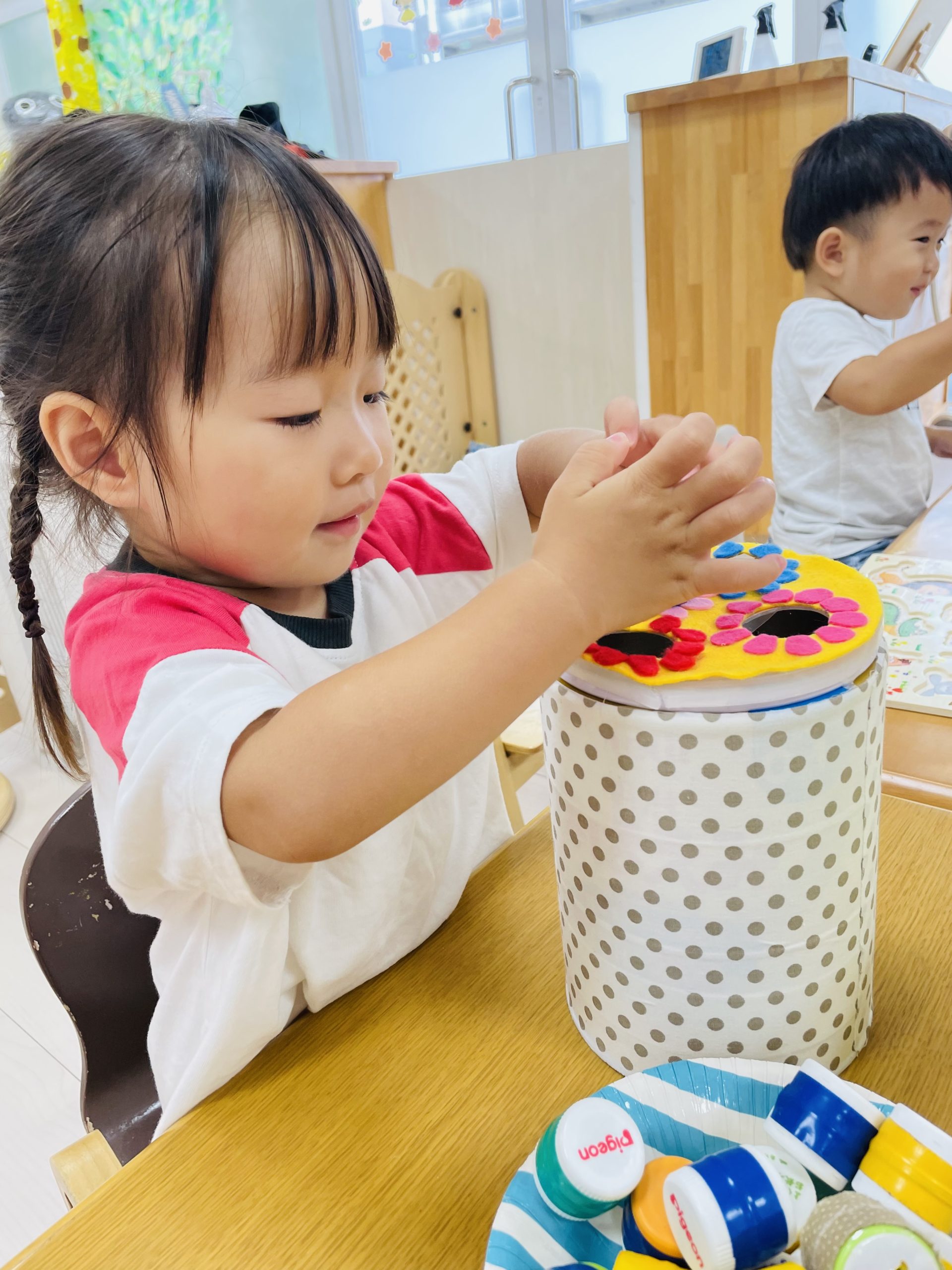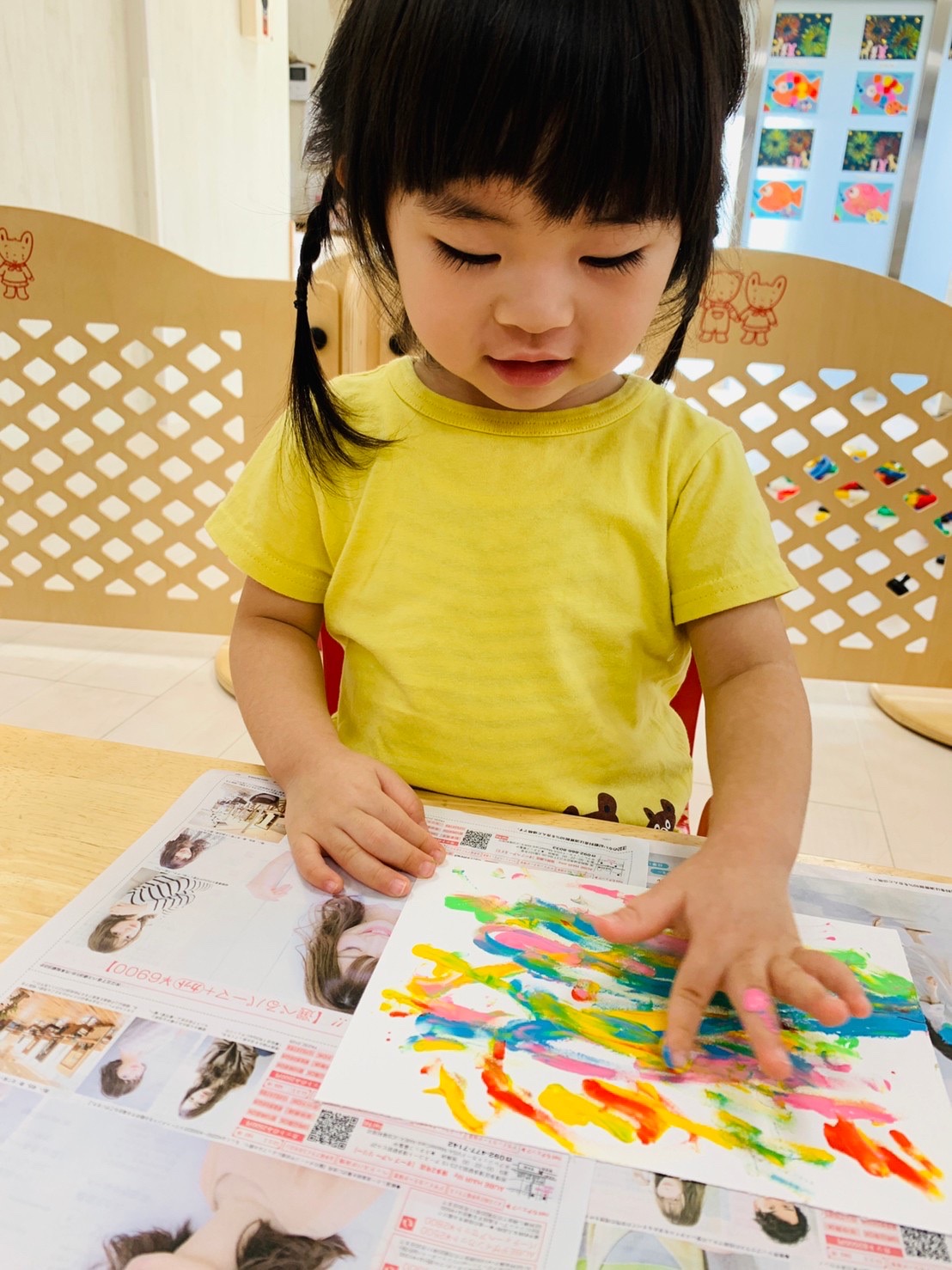 楽しく絵の具をしています☺️