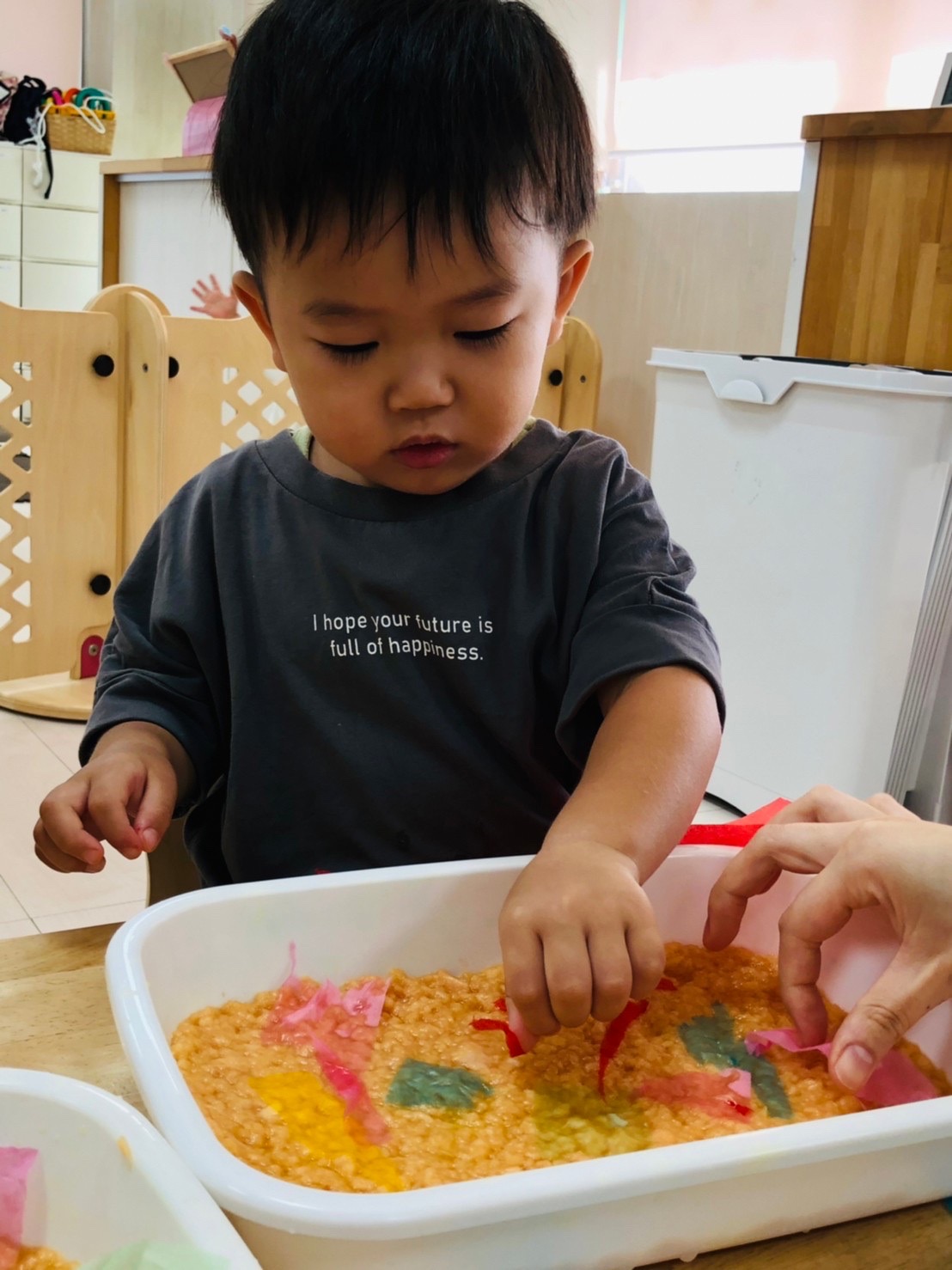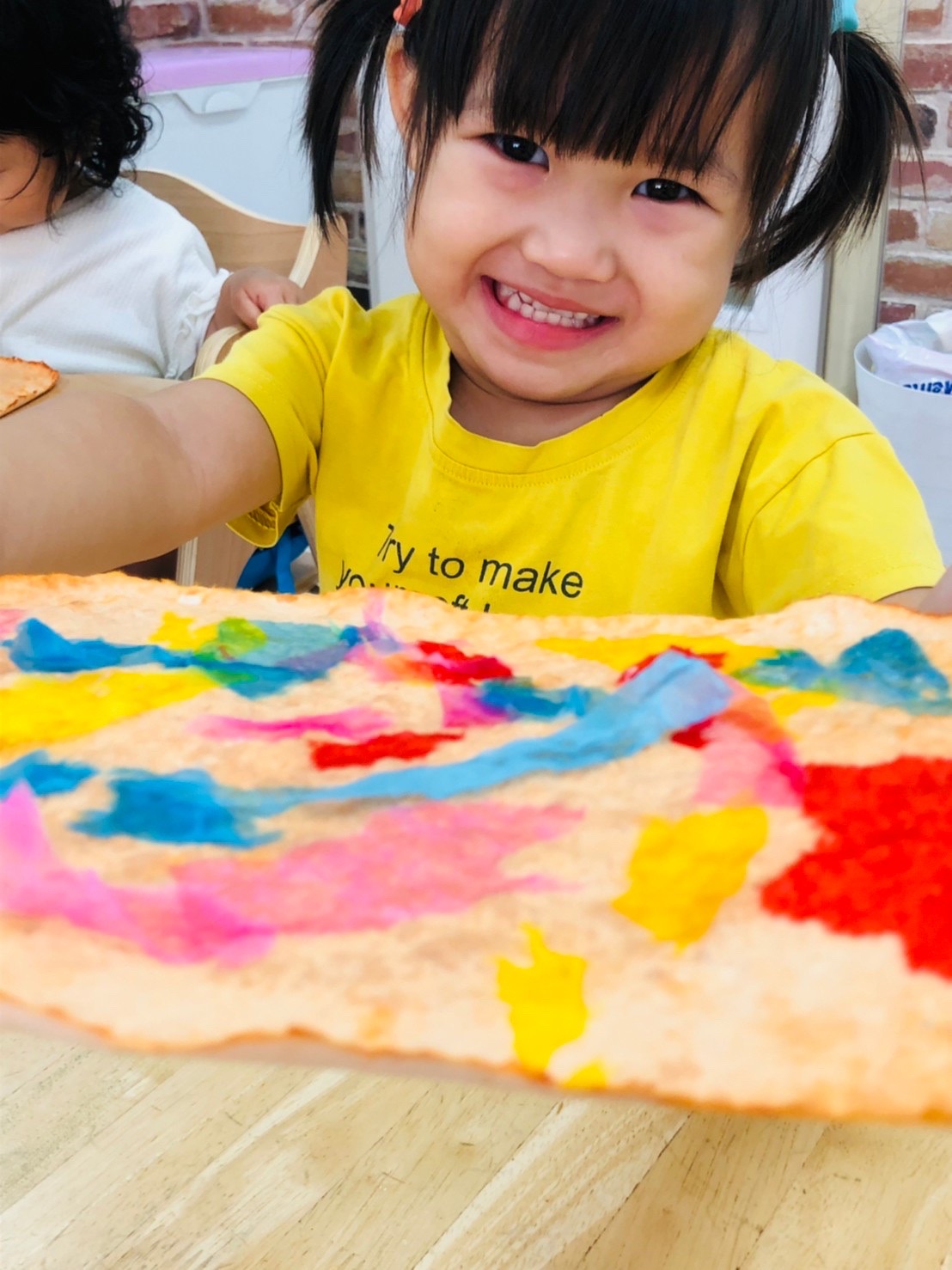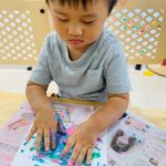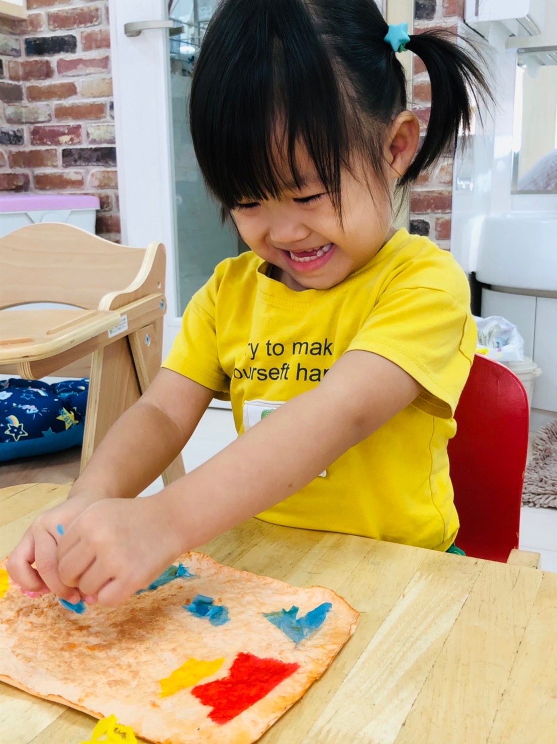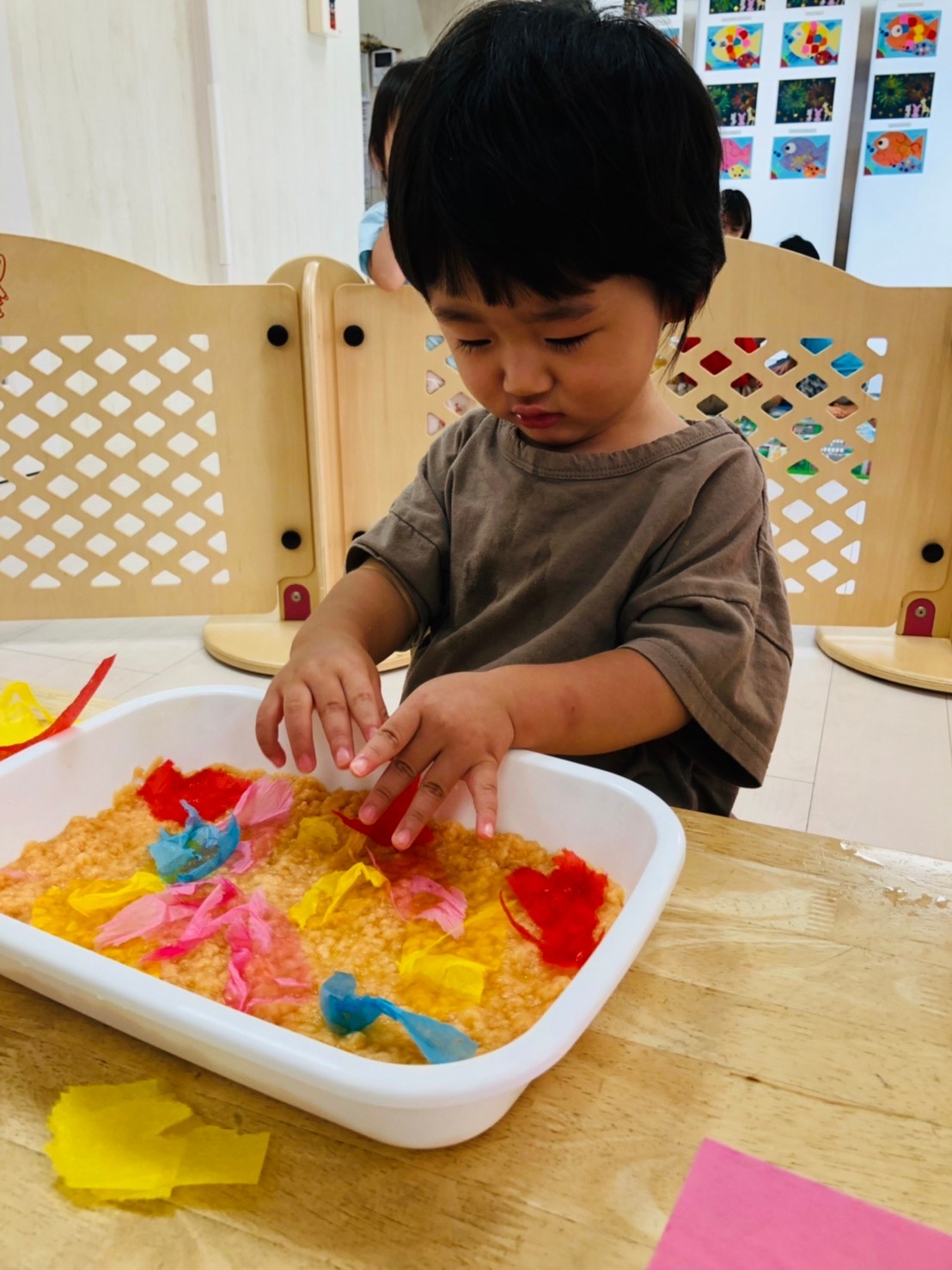 楽しく絵の具をしています☺️