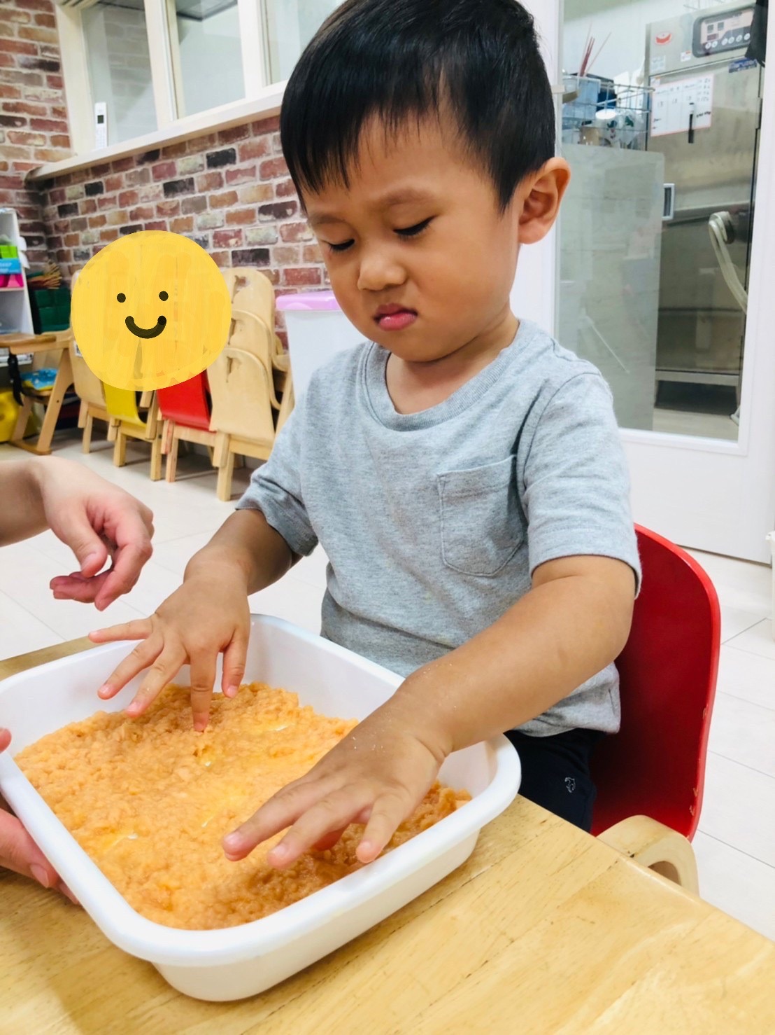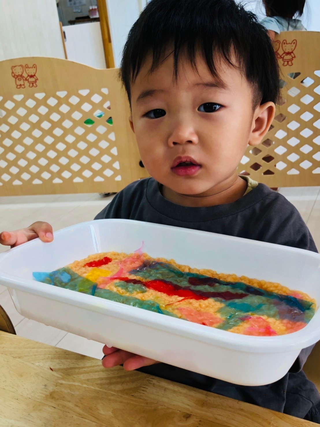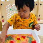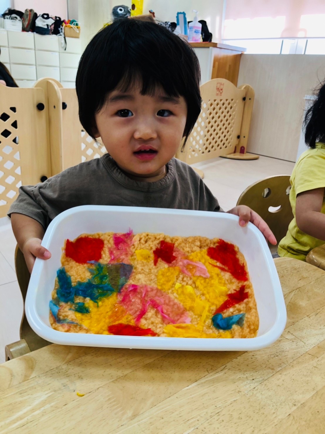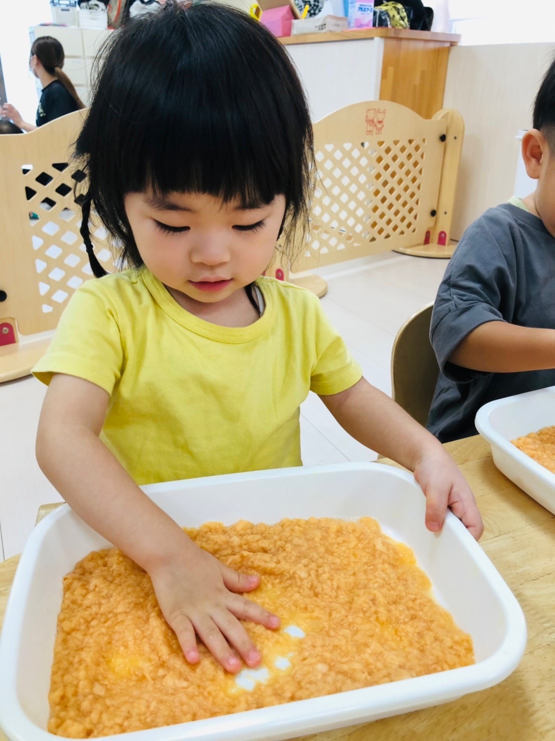 楽しく絵の具をしています☺️