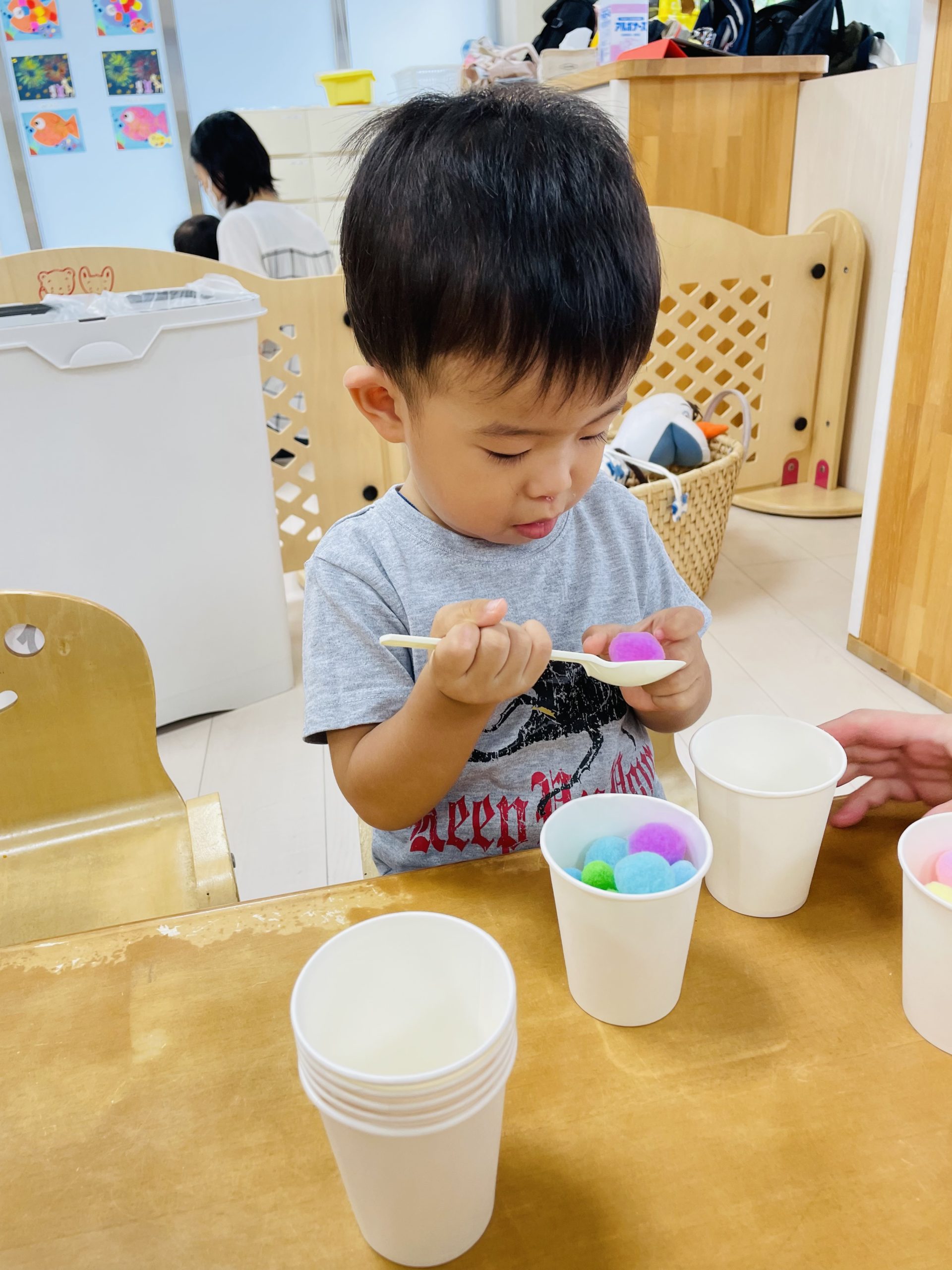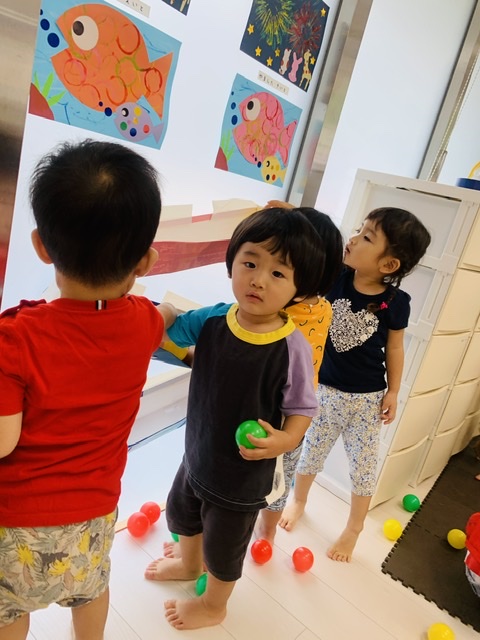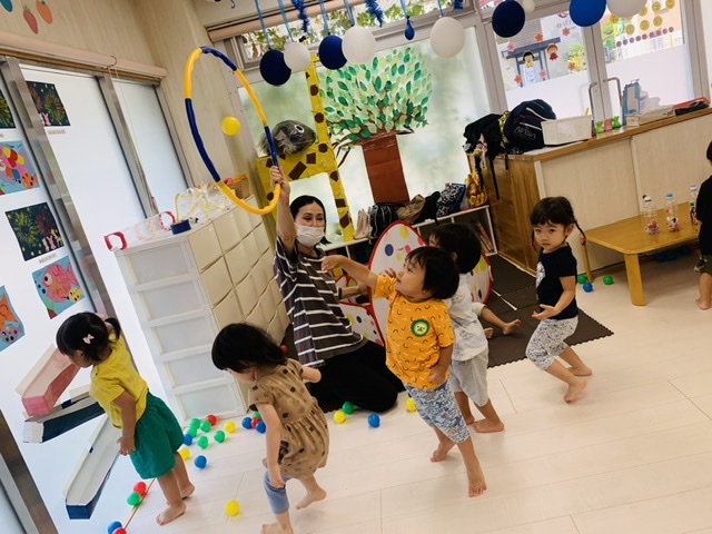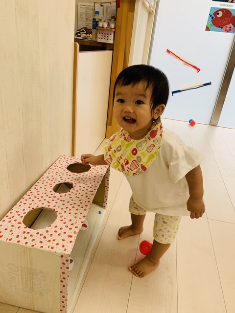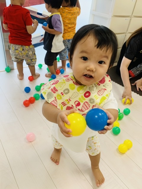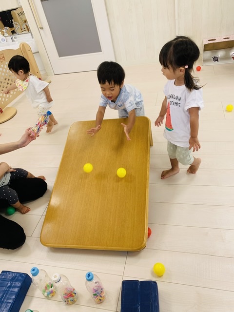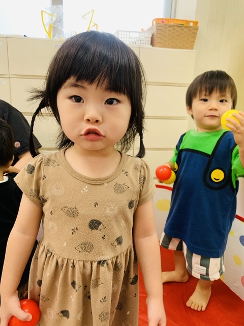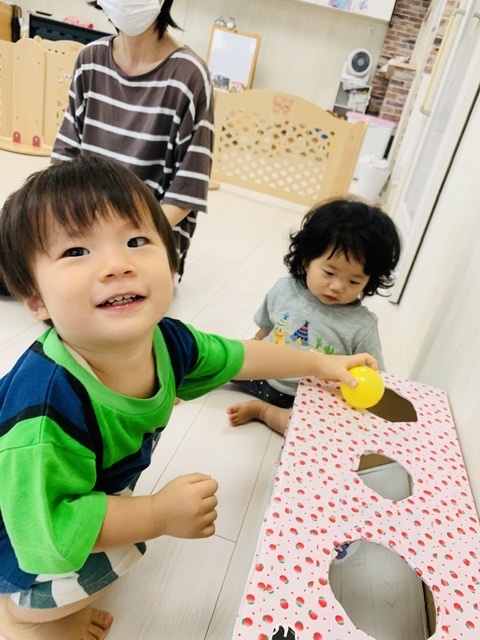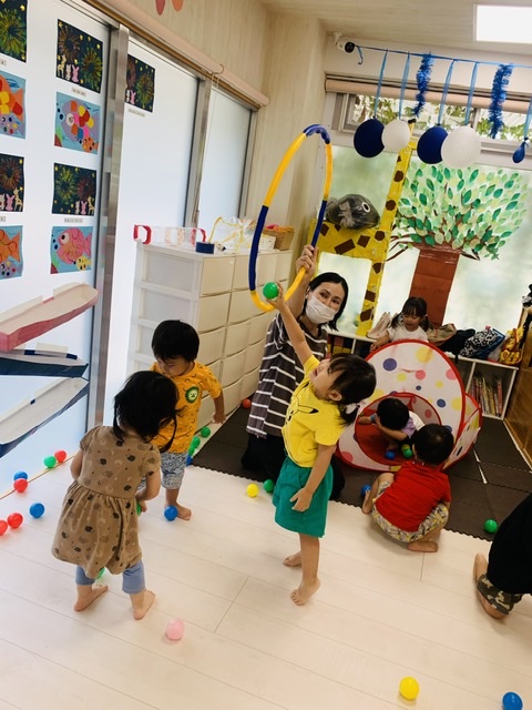 フラフープの中にボールを投げ入れるのも上手でした😃👏✨