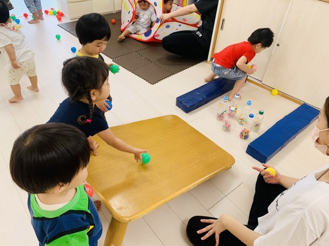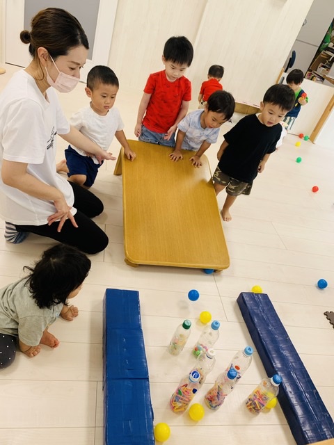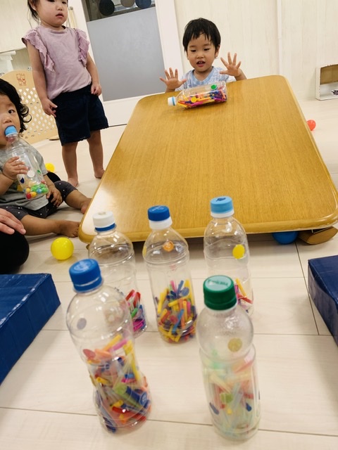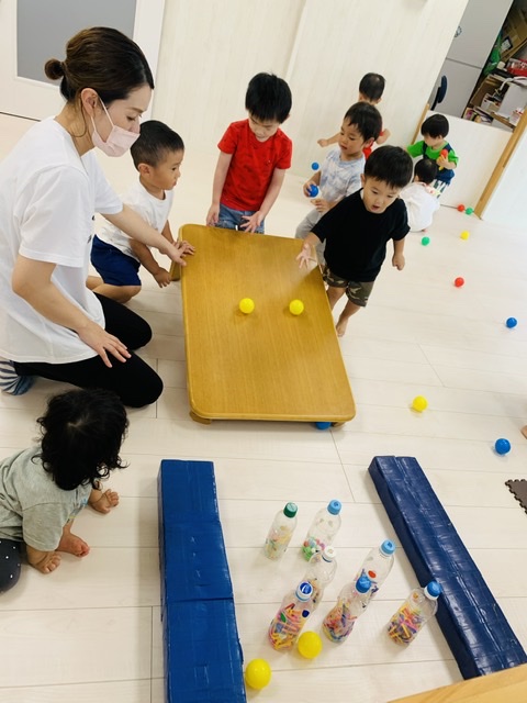 最後はペットボトルのピンを転がすお友達も🤗