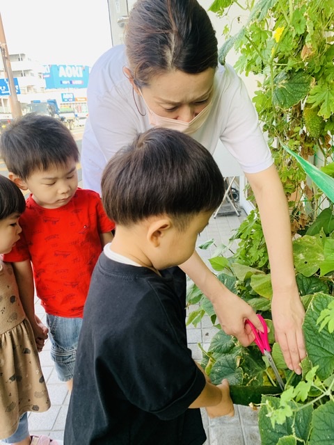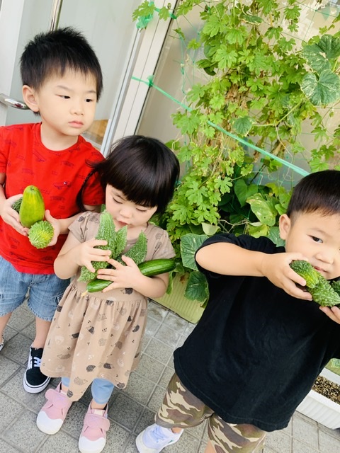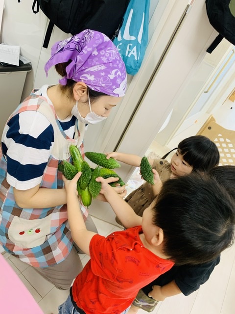 給食の先生がチャンプルーに入れてくれたり、塩漬けにしてくれました(*^^*)