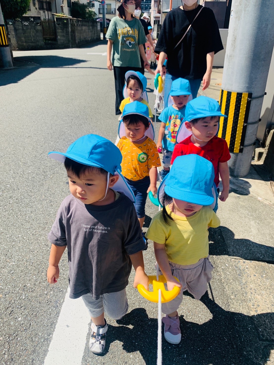 2歳児さんはお散歩ロープを持って、歩きました☺️
