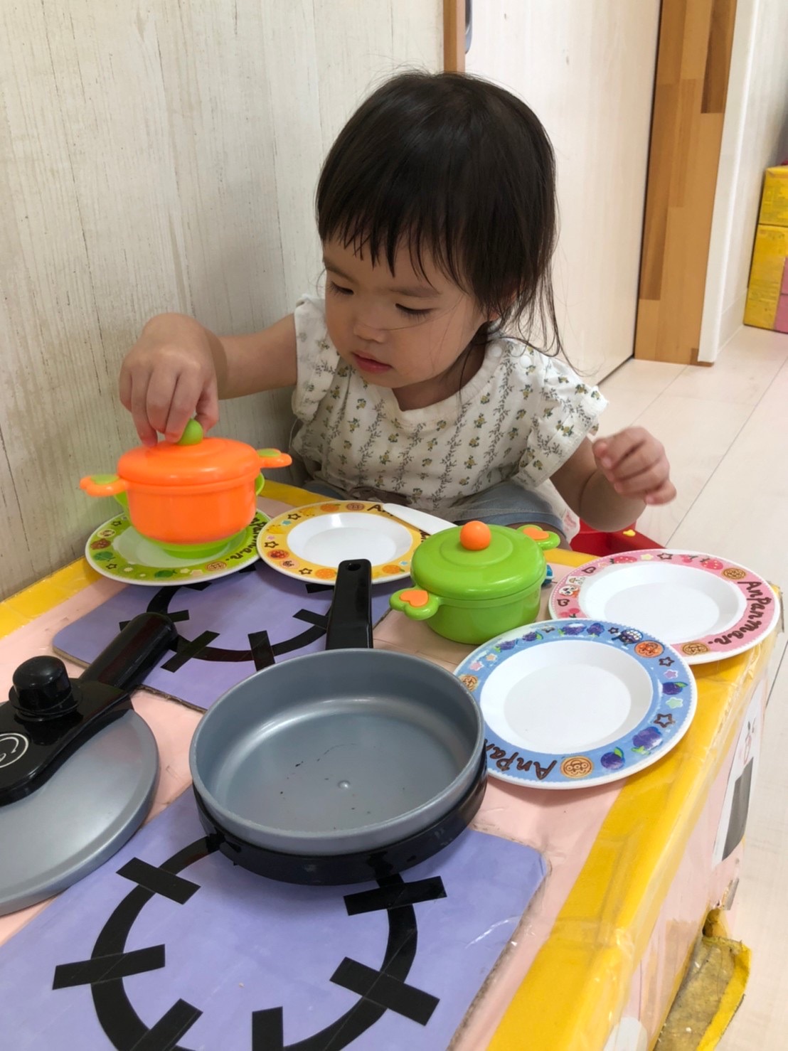 広いスペースでままごと遊びをしました🥰