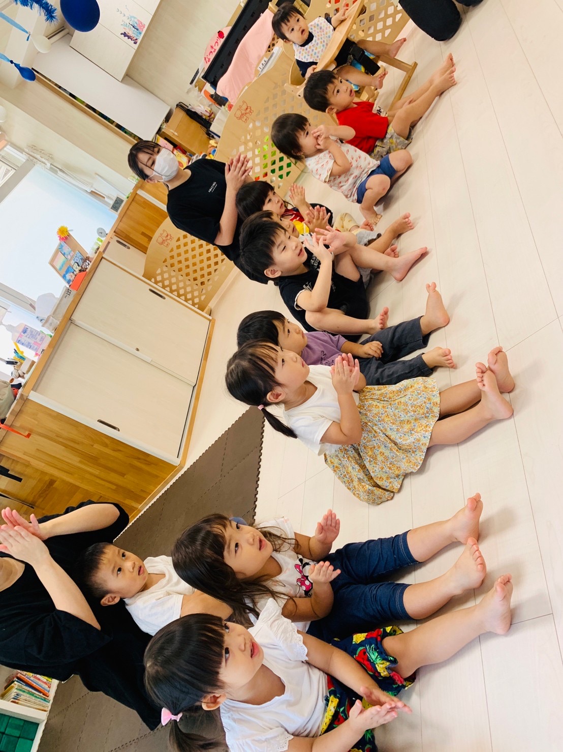 『おーいかばくん』のCD付きの絵本で身体を揺らしたり、手をたたいたりして聞いていました☺️
