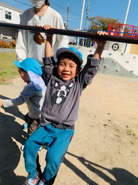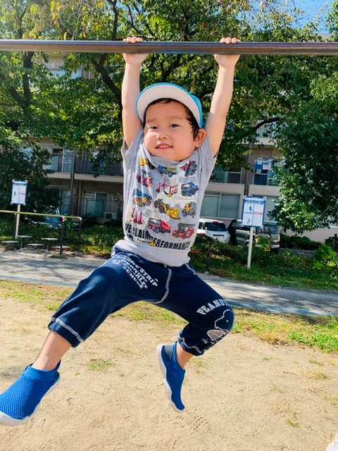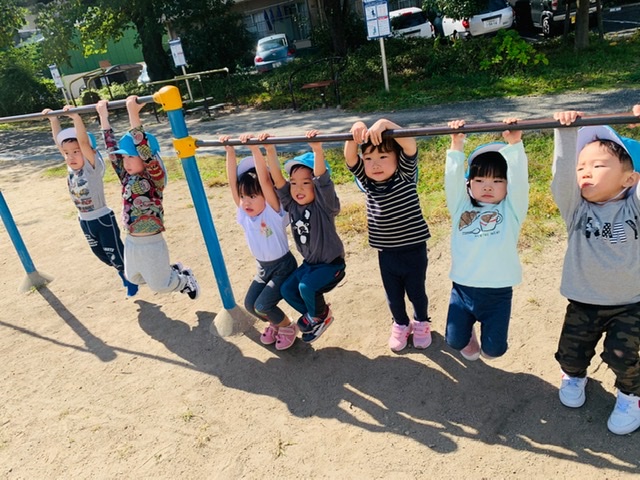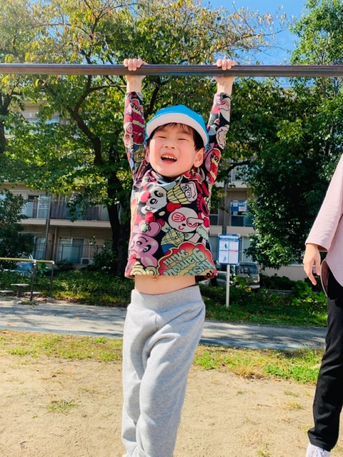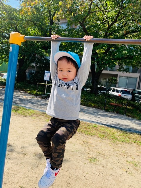 鉄棒ぶら下がりにも挑戦💨