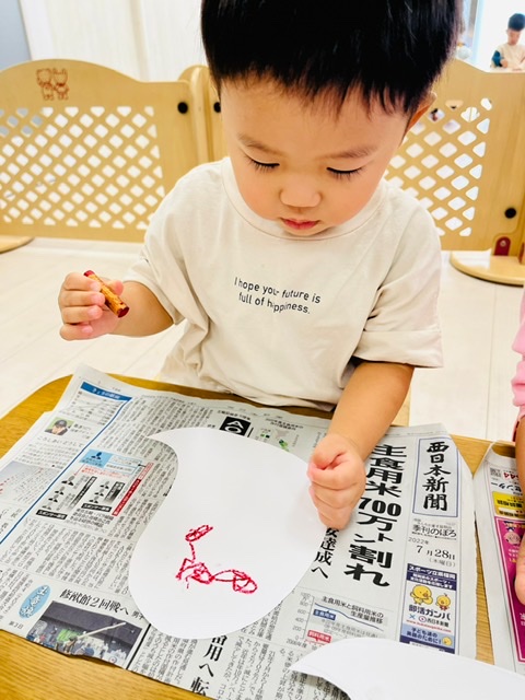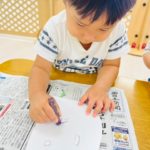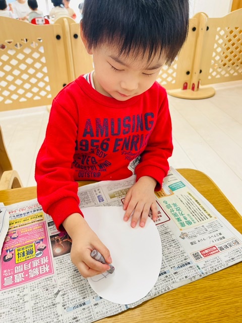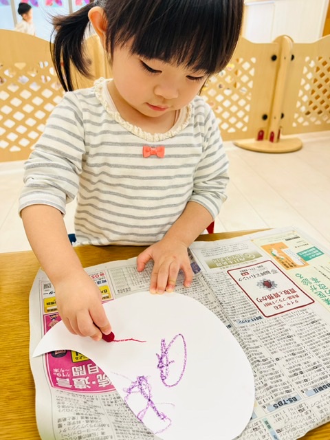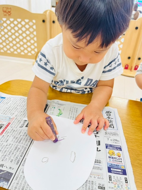 2歳さんはクレヨンで顔を描きましたよ💫