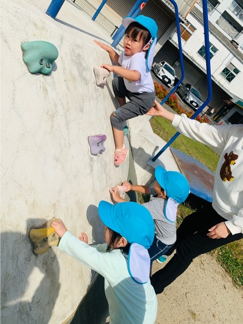 2歳さんは滑り台やボルタリングなどで