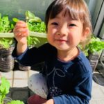 葉っぱも収穫して給食のお汁に