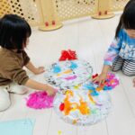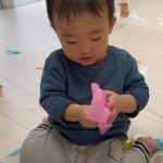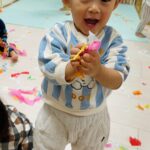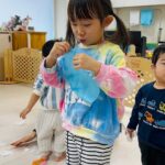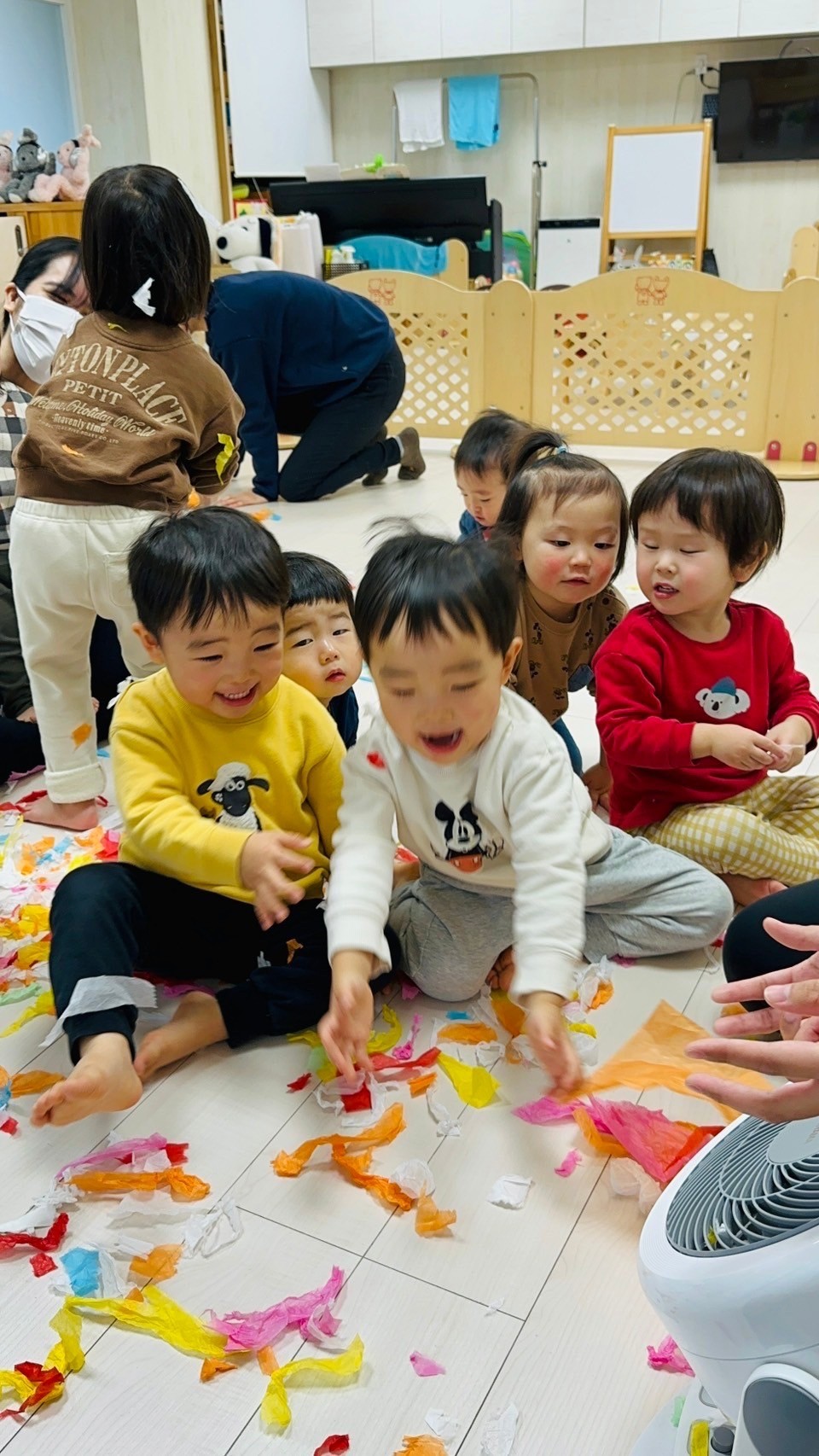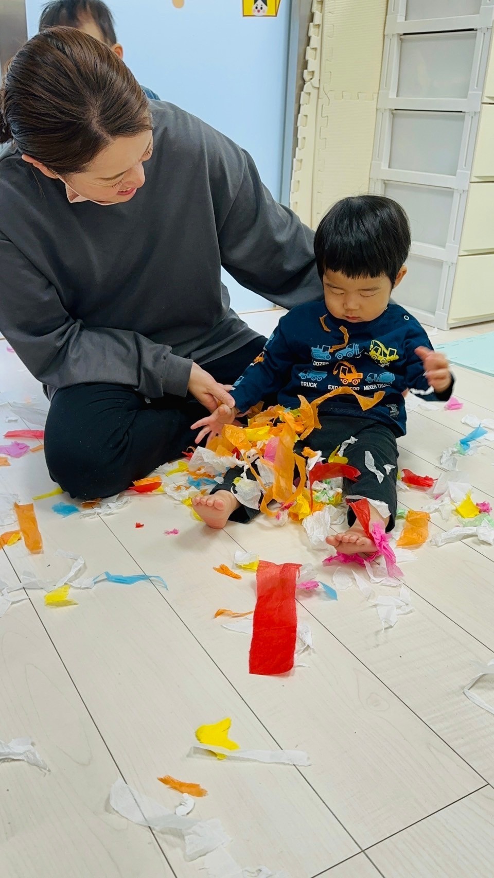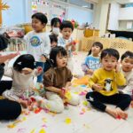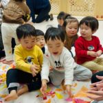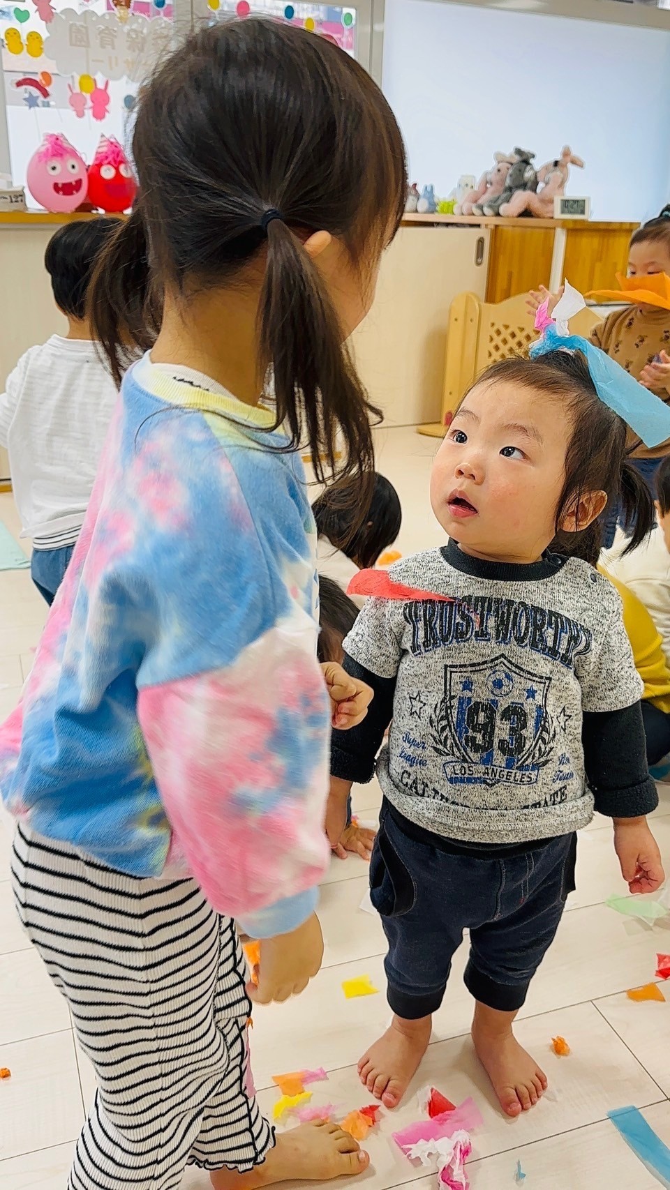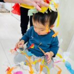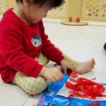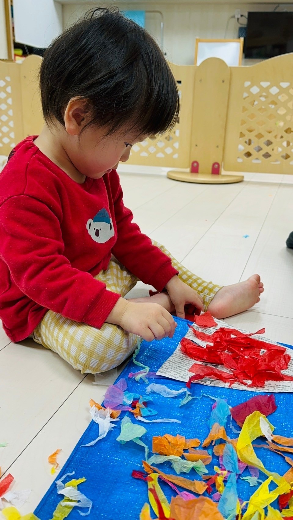雪が降っていたので、花紙を雪に見立てて遊びました❄️
