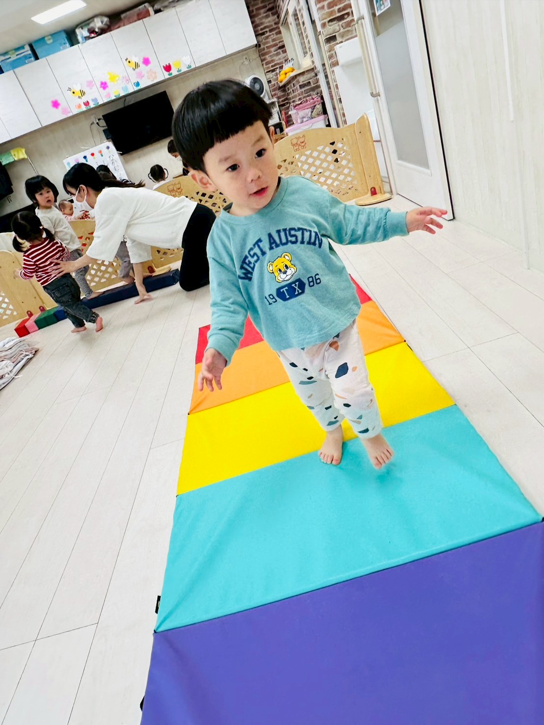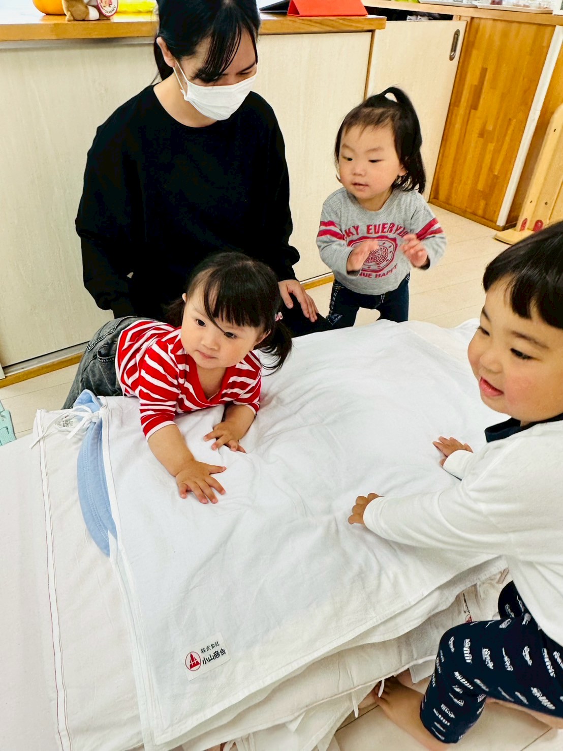 お布団の山では、ハイハイしたりジャンプしたりして楽しんでいましたよ♡
