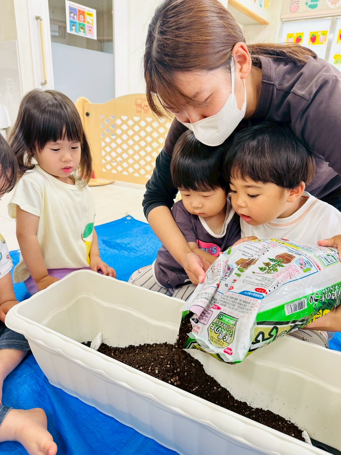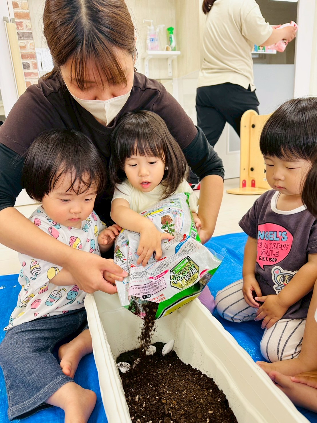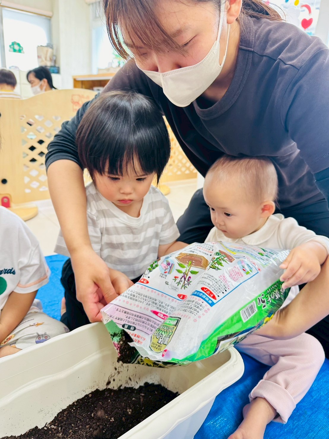 まずは土づくりのお手伝いをしてくれましたよ✨