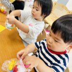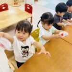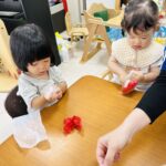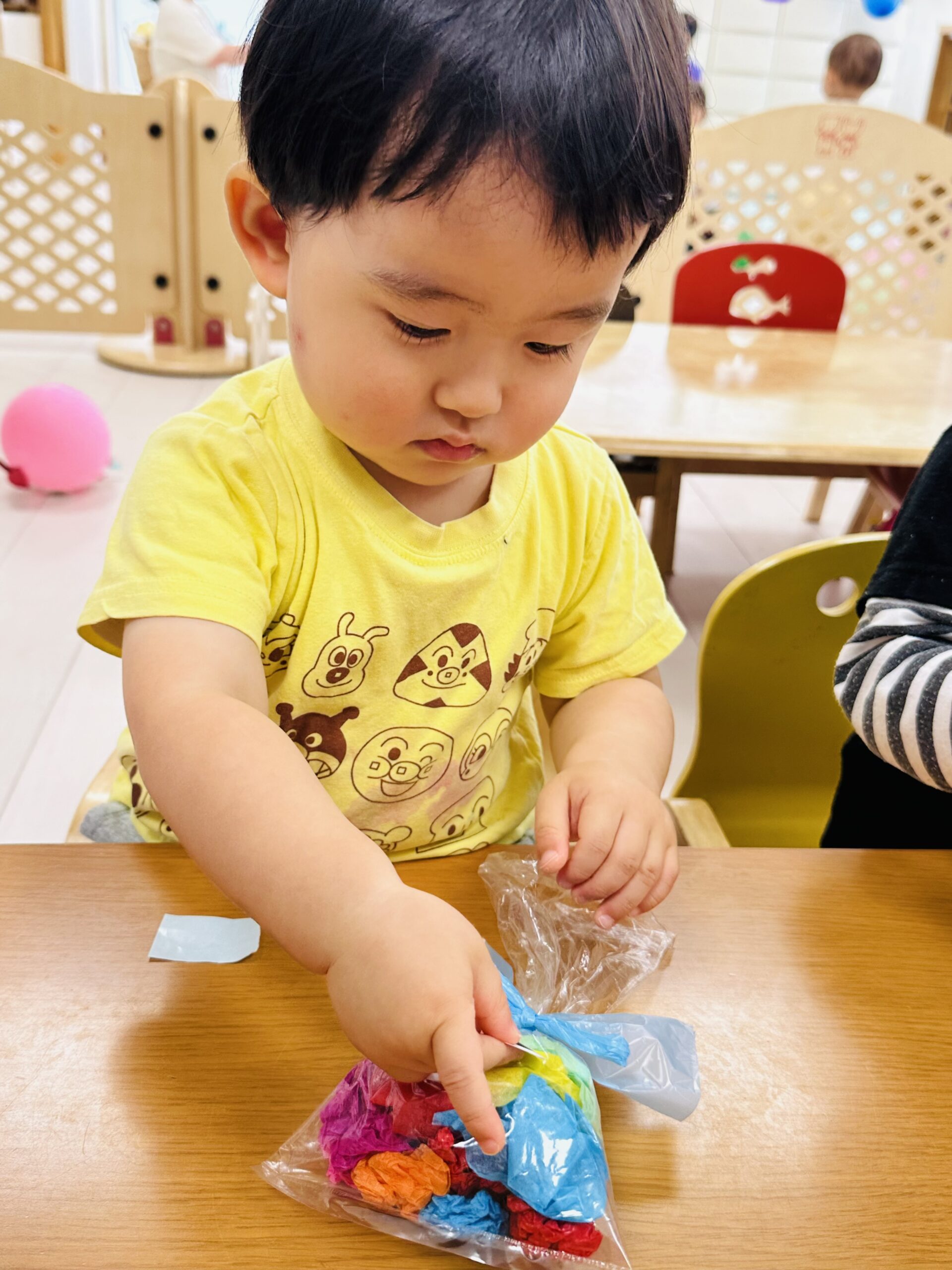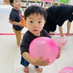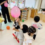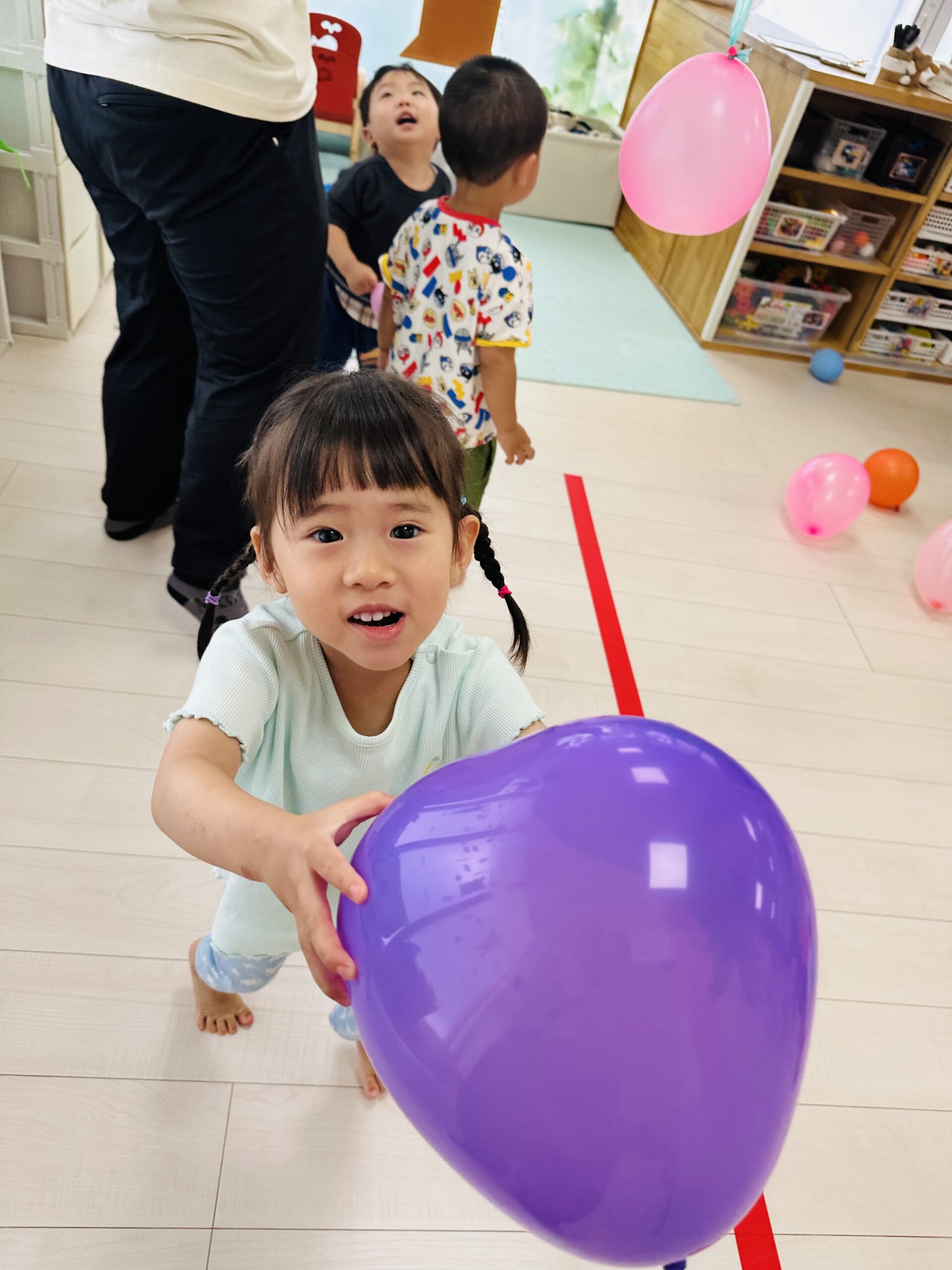 「パープル」「ピンク」「ブルー」と風船の色を英語で発音するお友達も♡♡